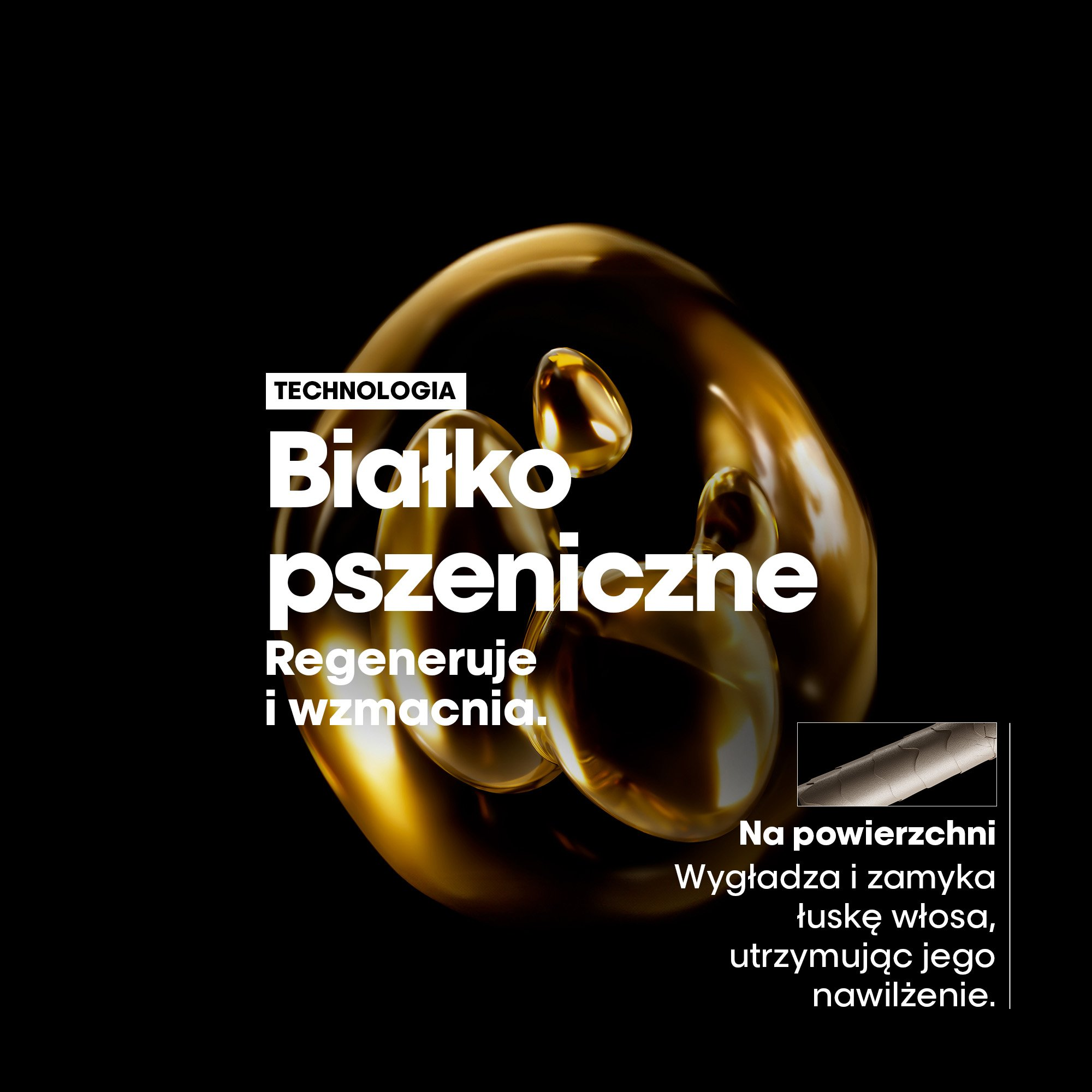 - Formuła z białkiem pszenicznym – połączenie intensywnej odbudowy z lekkością i naturalnym wyglądem włosów
