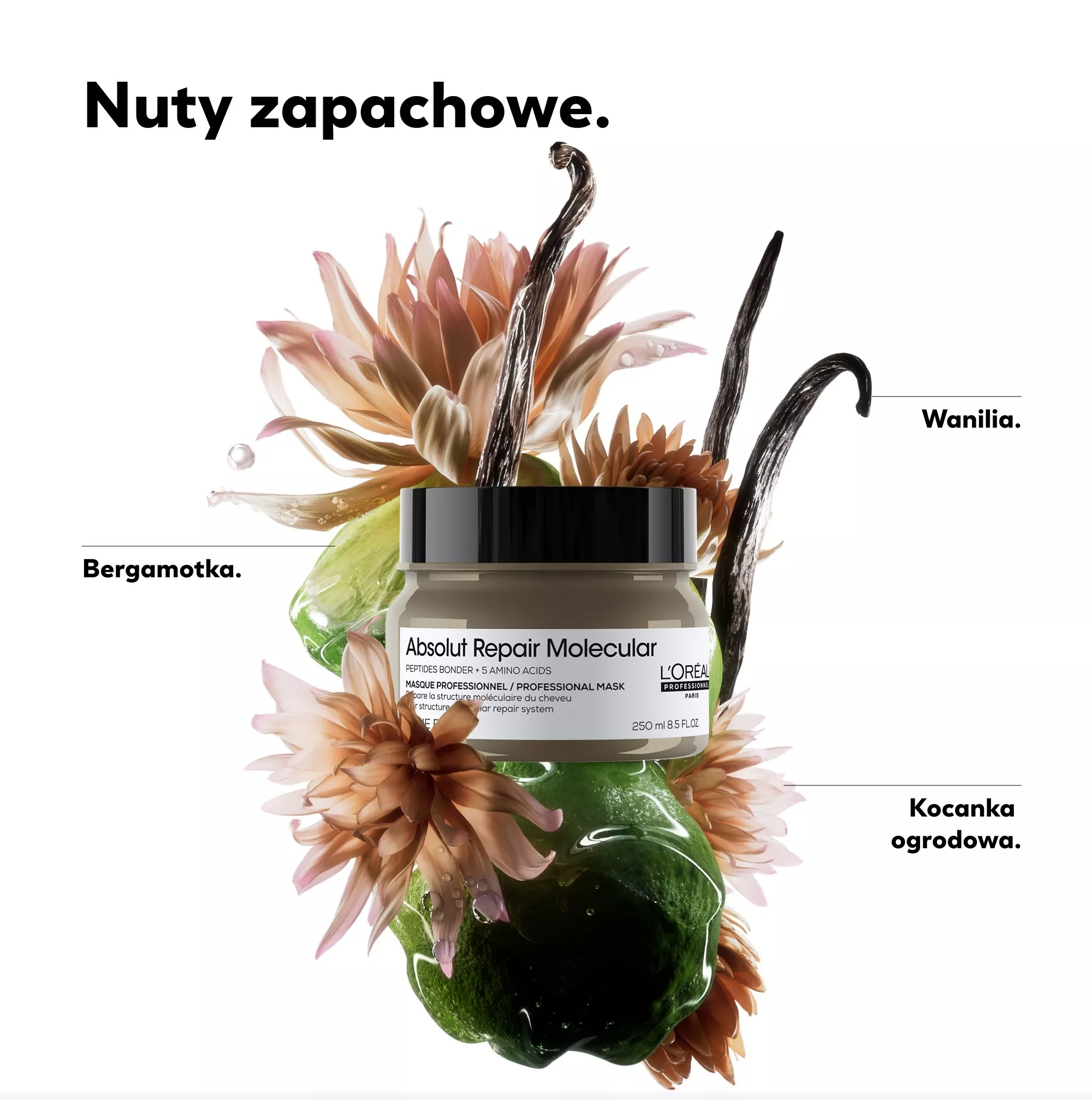 Odkryj moc profesjonalnej pielęgnacji z maską Loreal Absolut Repair Molecular, zaprojektowaną, aby odbudować strukturę molekularną Twoich włosów. Dzięki zawartości peptydów i 5 aminokwasów, maska głęboko wnika we włókna włosów, zapewniając im natychmiastową transformację. Twoje włosy zyskają olśniewający połysk, gładkość i niesamowitą mięsistość, które sprawią, że będą wyglądać zdrowo i pięknie.