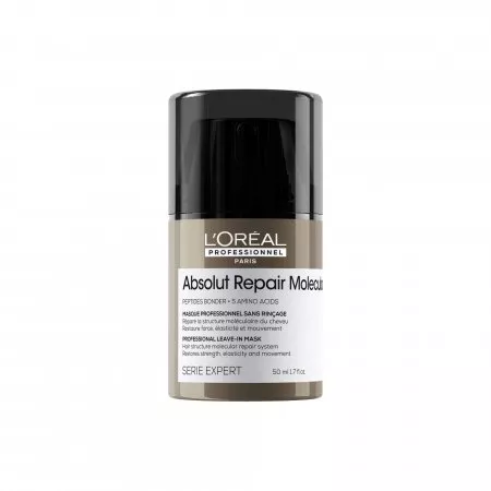 Odkryj profesjonalną maskę Loreal Absolut Repair Molecular, stworzoną z myślą o wzmocnieniu struktury włosów bez konieczności spłukiwania. Ta innowacyjna formuła zawiera wiązania peptydowe oraz 5 aminokwasów, które efektywnie naprawiają makromolekularną strukturę włosów. Dzięki lekkiej konsystencji maska szybko wnika we włosy, przywracając im siłę i elastyczność. Twoje włosy staną się gładkie, lśniące i zdrowo wyglądające, a dodatkowo będą chronione przed szkodliwymi czynnikami zewnętrznymi oraz wysoką temperaturą do 230°C.