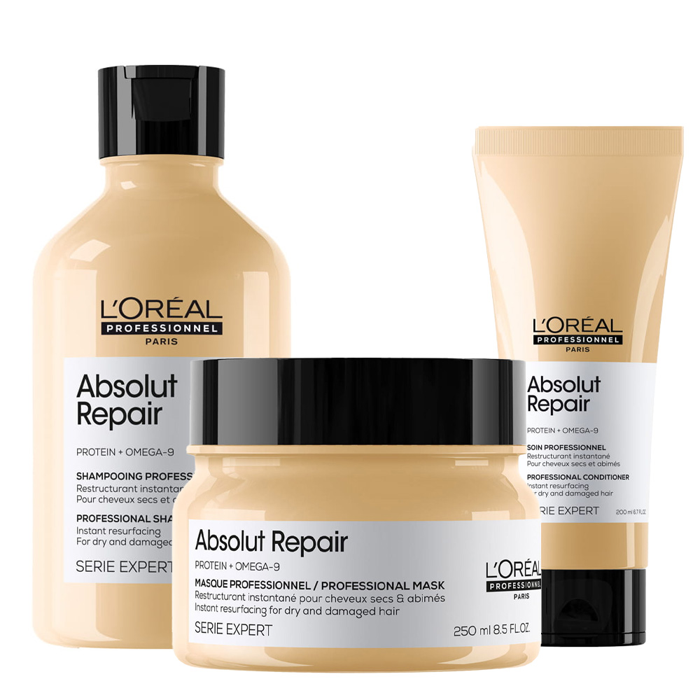 Włosy delikatne, wrażliwe, zniszczone zabiegami fryzjerskimi potrzebują specjalnej pielęgnacji. Na ich potrzeby odpowiada zestaw kosmetyków do włosów uwrażliwionych Loreal Absolut Repair. Kosmetyki te zawierają ogromną dawkę lipidów, ceramidów, protein, a wszystko to wsparte pielęgnującymi właściwościami komosy ryżowej. Stosowanie tego zestawu sprawia, że włosy stają się mocniejsze i piękniejsze na całej długości. Delikatna formuła nie obciąża włosów - po te kosmetyki możesz sięgać codziennie. Efektem będą intensywna regeneracja i zarazem lekkie włosy, które ładnie się układają, są gładkie i błyszczące.