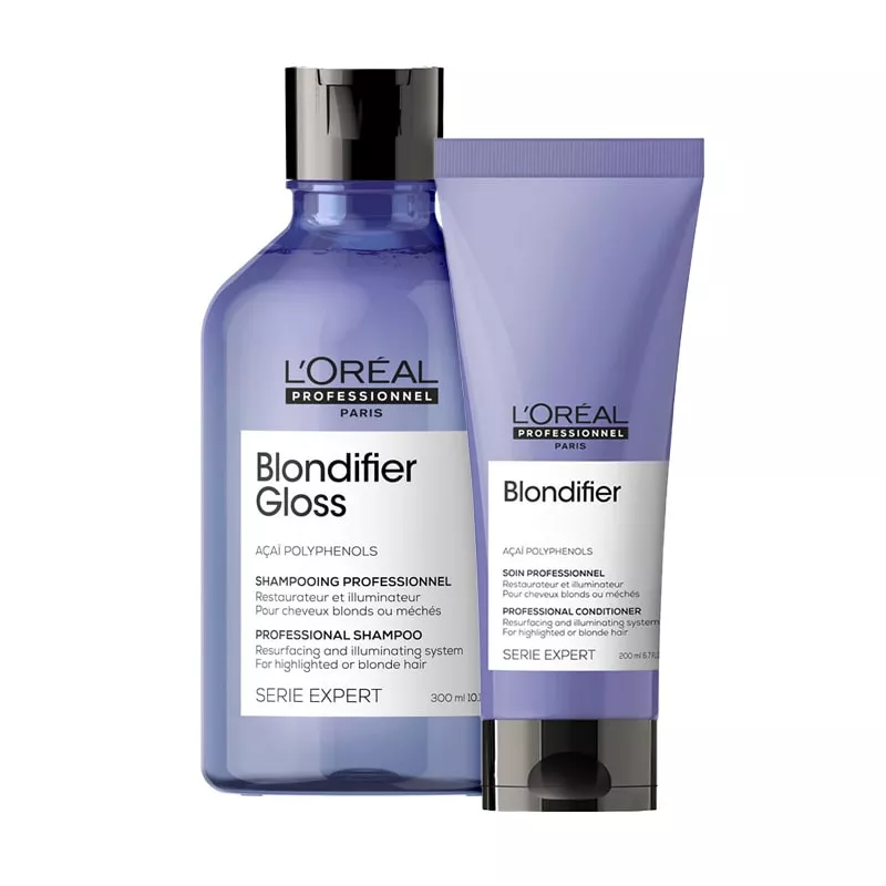 Włosy blond wymagają szczególnej pielęgnacji, ponieważ są delikatne, podatne na przesuszenie i łamanie. Mogą z czasem blaknąć i przybierać niepożądane żółte odcienie. Zestaw do włosów blond Loreal Blondifier Gloss to idealne rozwiązanie, by Twoje blond pasma pozostały lśniące i gładkie na dłużej. Dzięki niemu Twoje włosy będą cudownie miękkie i łatwe do rozczesania, a do tego zachwycą wielotonowym blaskiem. Kosmetyki te zawierają fioletowe pigmenty, które ochładzają kolor i eliminują niechciane ciepłe tony.