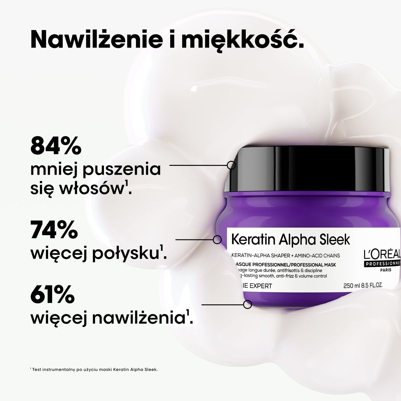 - Redukcja puszenia nawet o 84%1 po użyciu maski oraz o 28% po pełnej kuracji