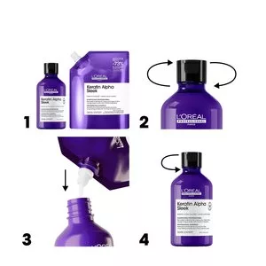 - Dla najlepszych efektów stosuj z pozostałymi produktami z gamy Keratin Alpha Sleek.