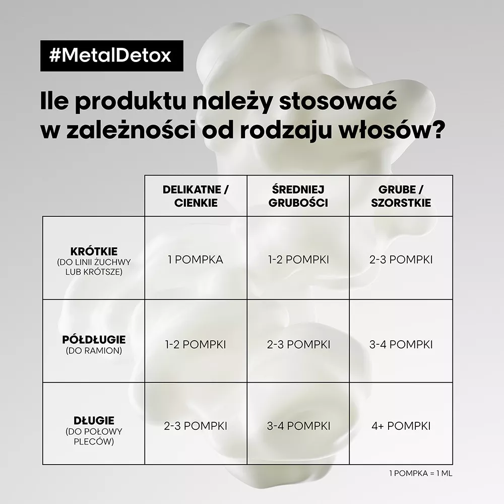Krem do włosów Loreal Metal Detox to innowacyjne rozwiązanie, które chroni przed puszeniem się włosów i ułatwia ich układanie, jednocześnie zapewniając optymalne nawilżenie od nasady po same końce. Ten kosmetyk wygładza włosy, wzmacnia je i sprawia, że są bardziej podatne na stylizację oraz wyglądają zdrowiej. W dotyku stają się miękkie, a ich kolor i blask zachwycają. Co więcej, kolor na włosach farbowanych utrzymuje się dłużej dzięki temu preparatowi. Krem Loreal Metal Detox oferuje termoochronę do 230 stopni Celsjusza i ochronę UV. Jego płynna konsystencja szybko się wchłania i nie obciąża włosów, co czyni go idealnym do każdego rodzaju włosów.