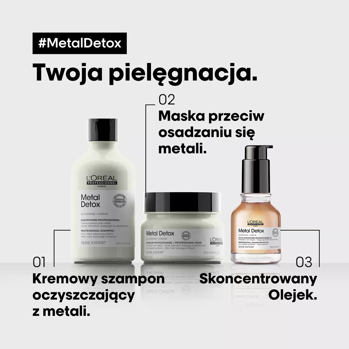Loreal Metal Detox, zestaw po koloryzacji i dekoloryzacji, szampon + maska + olejek