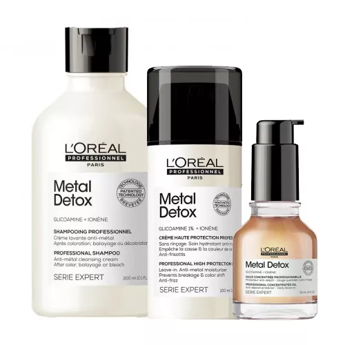 Loreal Metal Detox, zestaw po koloryzacji oraz dekoloryzacji szampon + olejek + krem
