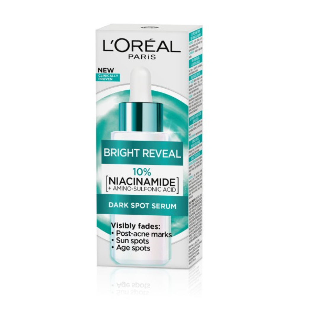 Poznaj L'Oreal Paris Bright Reveal serum redukujące przebarwienia, które dzięki zaawansowanej formule pomaga zwalczać problemy skórne. To innowacyjne serum, do stosowania zarówno na dzień, jak i na noc, zawiera 10% kompleks niacynamidu oraz kwasu amino-sulfonowego, które skutecznie redukują przebarwienia takie jak potrądzikowe, posłoneczne oraz te związane z wiekiem. Już po tygodniu regularnego stosowania, skóra staje się bardziej rozświetlona, a wszystkie rodzaje przebarwień widocznie znikają.