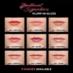 Dość kompromisów! Poznaj nowy Brilliant Signature Plump-In-Gloss – błyszczyk zainspirowany składnikami ze świata skincare. Wypróbuj formułę z technologią kolagenową i kwasem hialuronowym i poczuj olśniewający blask na swoich ustach. Plump-In-Gloss! Dla efektu nawilżonych i powiększonych ust.