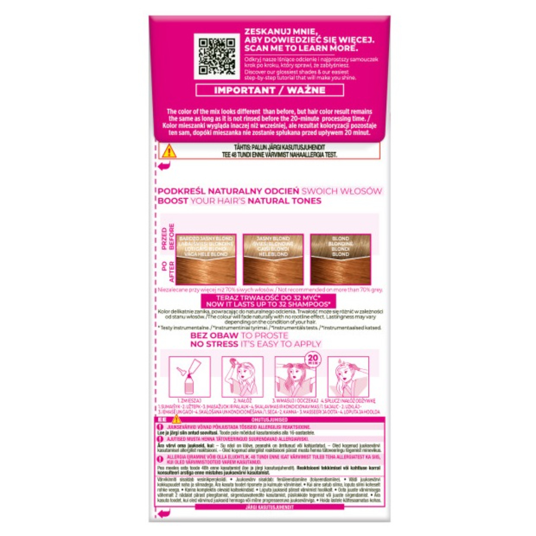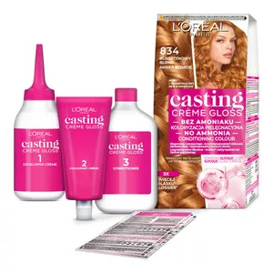 Odkryj wyjątkową koloryzację z L'Oreal Paris Casting Creme Gloss 834 Bursztynowy Blond. Ta farba do włosów bez amoniaku zapewnia szybkie i łatwe zastosowanie, oferując wyjątkowo lśniące włosy oraz optymalne pokrycie siwych włosów. Dzięki unikalnej formule zapewnia 3 razy więcej blasku, widocznie zdrowsze włosy i doskonałe pokrycie siwizny.