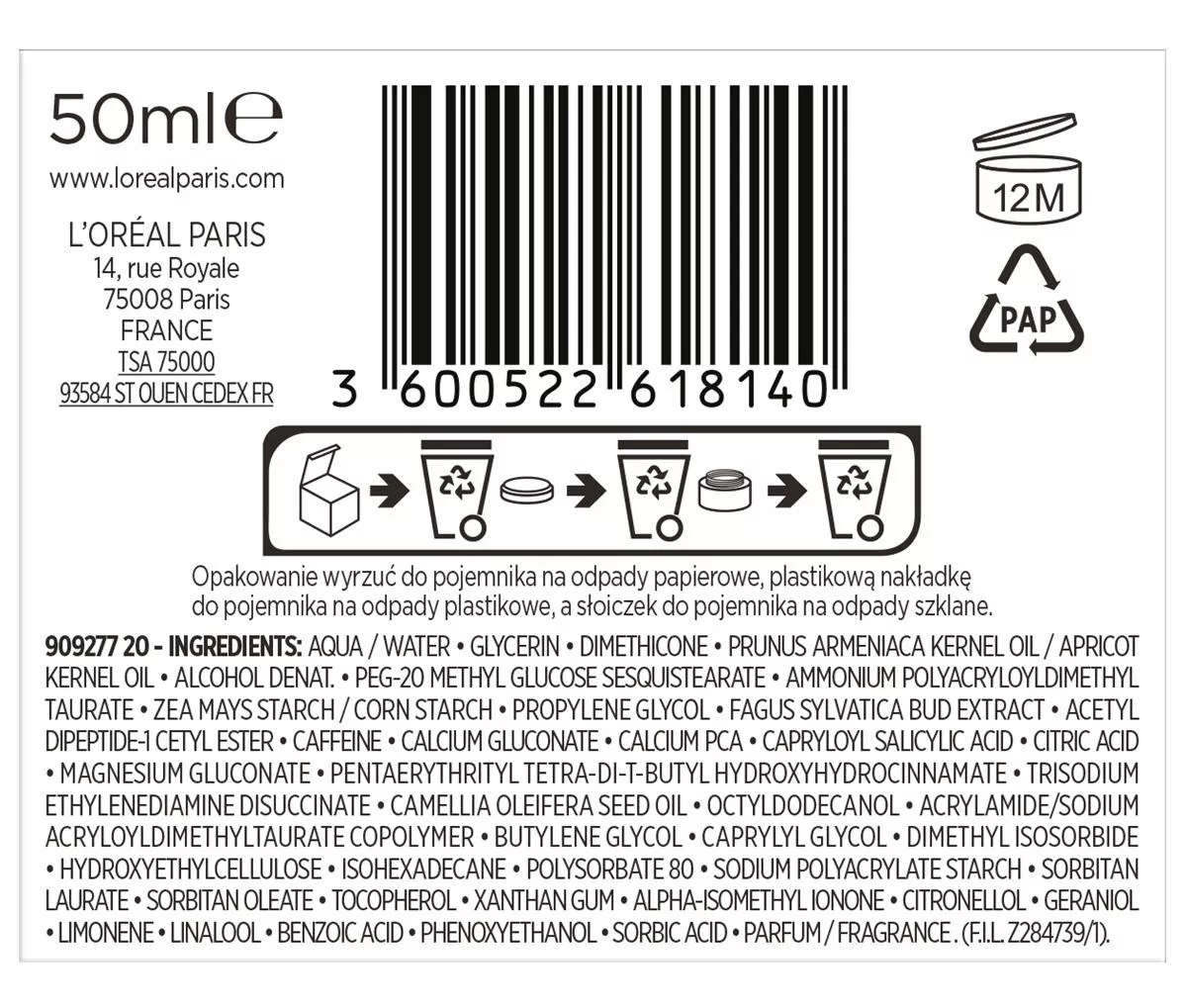 Główne składniki: Aqua / Water, Glycerin, Dimethicone, Prunus Armeniaca Kernel Oil / Apricot Kernel Oil, Camellia Oleifera Seed Oil, Acetyl Dipeptide-1 Cetyl Ester.