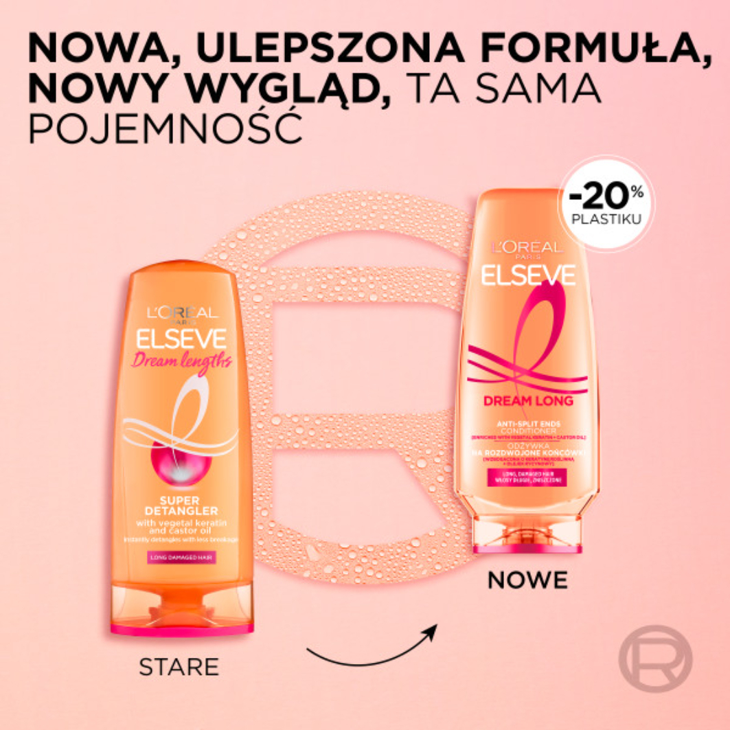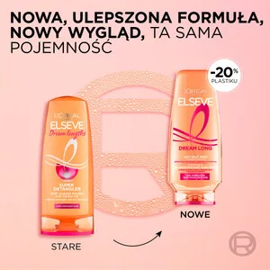 Marzysz o długich włosach, ale wciąż obcinasz zniszczone końcówki, aby zachować ich dobry wygląd? Koniec z tym! Poznaj gamę Dream Long, która zregeneruje, odżywia i wygładza długie włosy od nasady aż po same końce. Sięgnij po Odżywkę Rozplątującą, która pomaga błyskawicznie rozczesać włosy: możesz teraz nimi potrząsać, skręcać je, związywać i rozpuszczać, chroniąc je przed łamaniem. Nie pozwól wygrać splątaniu! Formuła została wzbogacona o pielęgnujące składniki: keratynę roślinną, by zregenerować włosy na całej długości; witaminy, aby je wzmocnić i olejek rycynowy, aby odżywić włosy, nadać im blask i pozwolić zachować ich długość. Nowa butelka wykonana jest w 100% z plastiku pochodzącego z recyklingu* oraz nadaje się do ponownego przetworzenia. *Z wyjątkiem nakrętki i barwników.