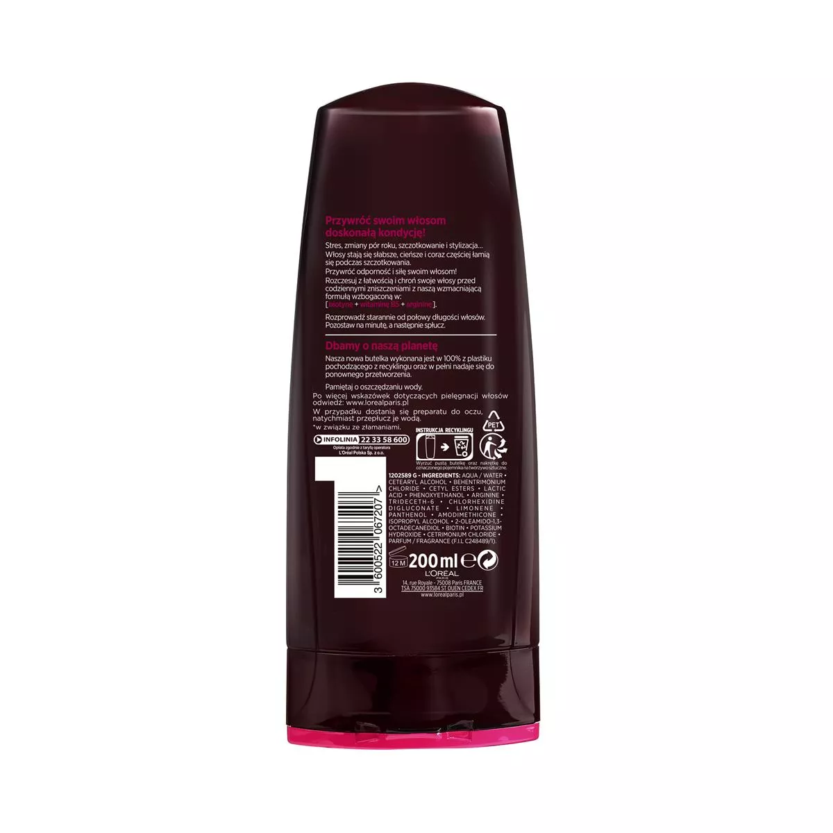 Wzbogacona o argininę, biotynę i witaminę B5 dla kompleksowego wzmocnienia włosów.