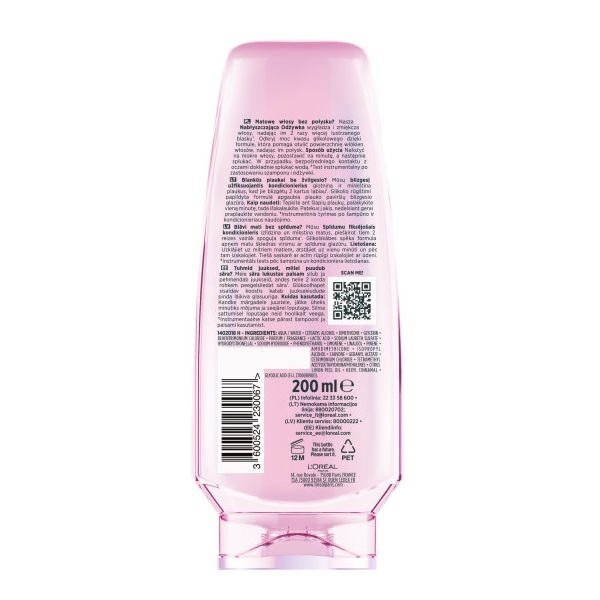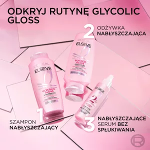 L'Oreal Paris Elseve Glycolic Gloss odżywka nabłyszczająca do włosów matowych to innowacyjne rozwiązanie stworzone z myślą o osobach, których włosy utraciły naturalny blask i stały się matowe. Dzięki zaawansowanej formule z kwasem glikolowym, odżywka skutecznie wygładza, zmiękcza oraz nadaje włosom aż 2 razy więcej lustrzanego połysku*. Odkryj siłę pielęgnacji, która otula powierzchnię włókien włosów, przywracając im zdrowy wygląd i intensywny blask. Regularne stosowanie sprawia, że włosy są wyraźnie bardziej miękkie, gładkie i pełne życia.
