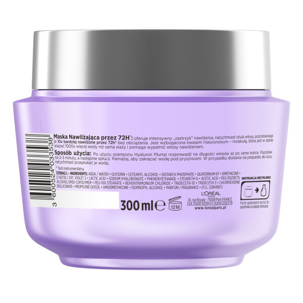 Po użyciu szamponu Hyaluron Plump rozprowadź maskę na długości włosów aż po same końce. Pozostaw na 2-3 minuty, a następnie spłucz.