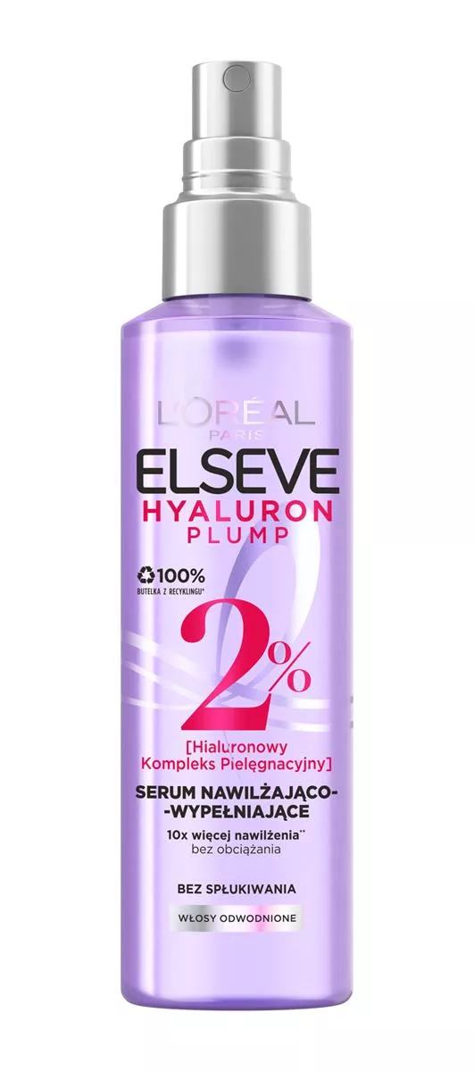 Czy Twoje włosy są odwodnione? To oznaka utraty nawilżenia. Poznaj serum L'Oreal Paris Elseve Hyaluron Plump Nawilżająco-wypełniające, które zawiera 2% Hialuronowego Kompleksu Pielęgnacyjnego. To innowacyjne serum błyskawicznie uzupełnia nawilżenie włosów i zwiększa średnicę włókna włosów o 9% przy każdym zastosowaniu. Codzienne stosowanie zapewnia 10x więcej nawilżenia, przywracając kształt włosów na całej długości. Dzięki temu włosy stają się bardziej sprężyste i pełniejsze, bez obciążania. Serum można używać na mokre i suche włosy o dowolnej porze dnia, by zapewnić nawilżenie przez cały dzień.