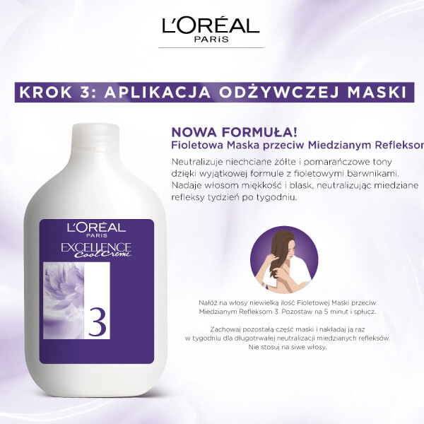 - Fioletowa maska neutralizująca miedziane refleksy, nadaje włosom miękkość i blask.