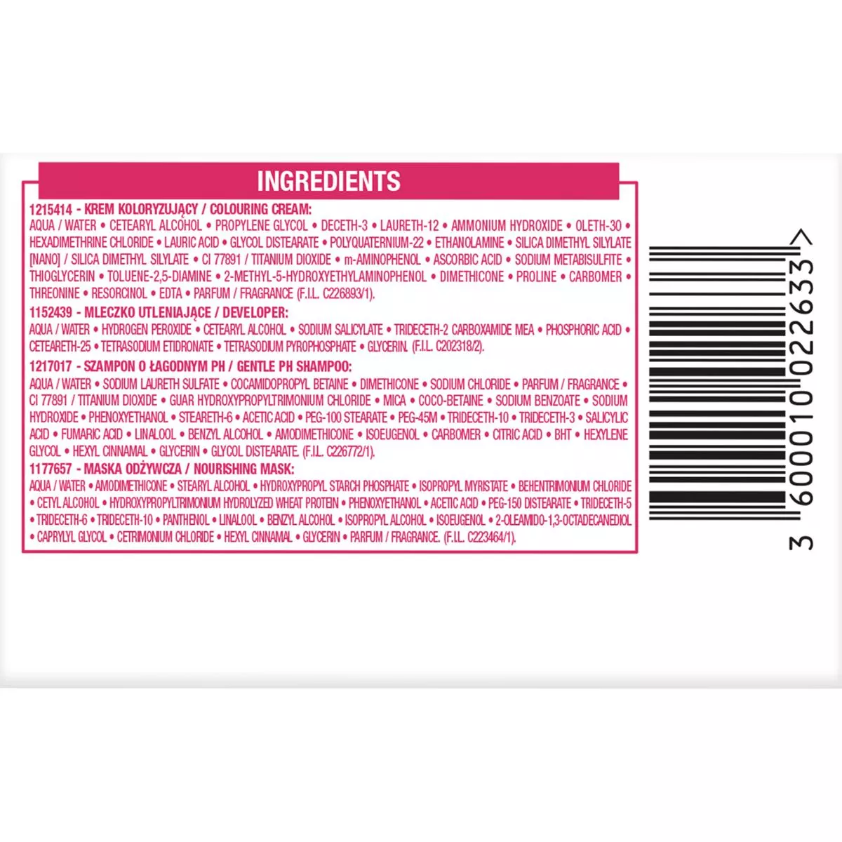 1152439 - Aqua / Water, Hydrogen Peroxide, Cetearyl Alcohol, Trideceth-2 Carboxamide Mea, Ceteareth-25, Glycerin, Phosphoric Acid, Tetrasodium Etidronate, Tetrasodium Pyrophosphate, Sodium Salicylate (f.i.l. D202318/7).
