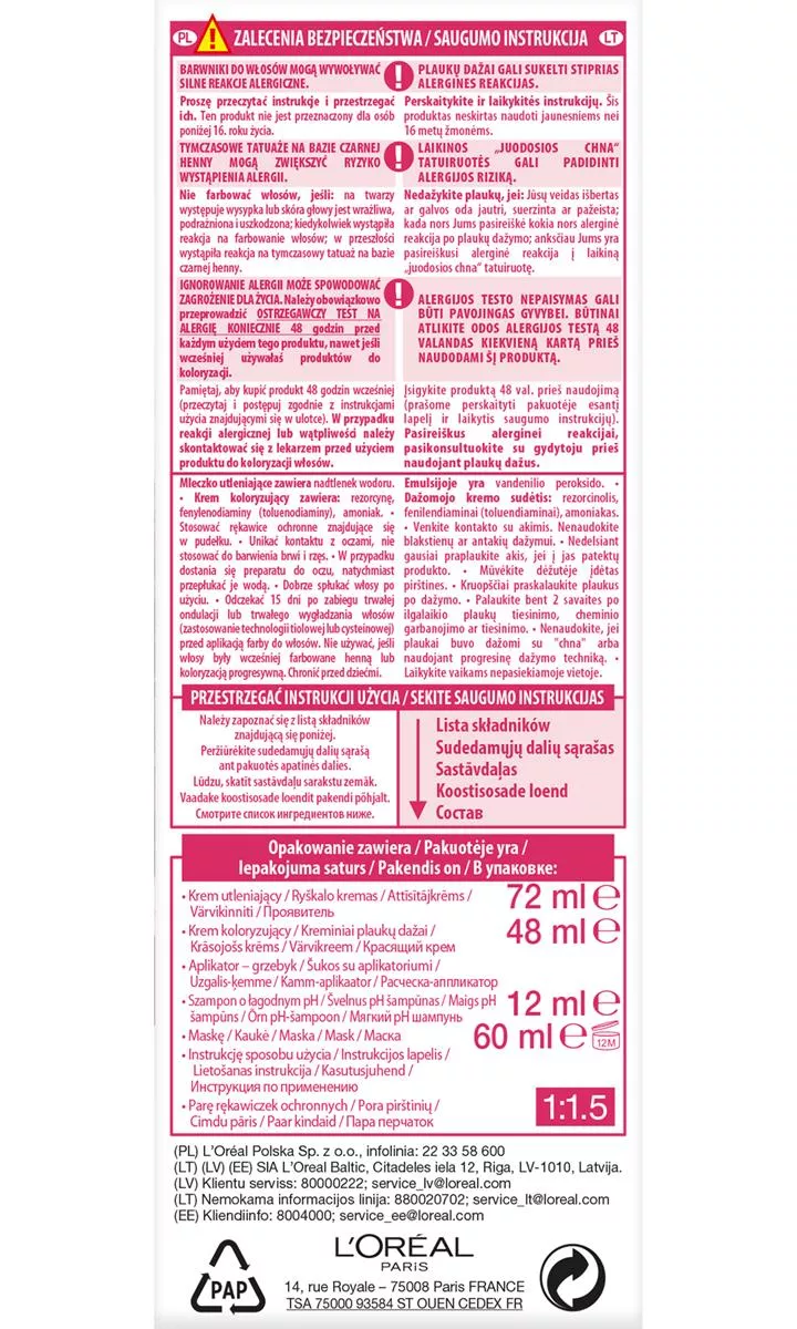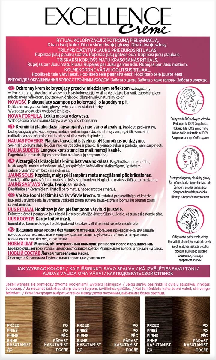 Wybierz swój idealny odcień. Efekt kolorystyczny zależy od Twojego naturalnego koloru. Jeśli wahasz się pomiędzy dwoma odcieniami, wybierz jaśniejszy.
