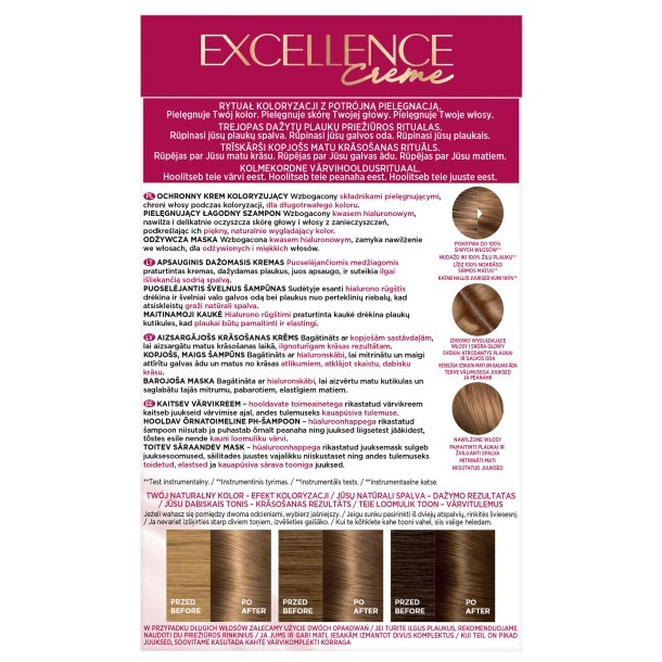 Przestrzegaj instrukcji użycia znajdujących się wewnątrz opakowania, aby uzyskać najlepsze efekty i pełną ochronę włosów.