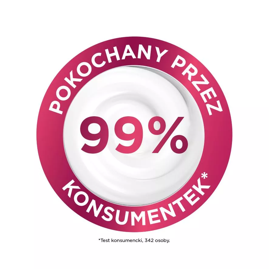 - Kolagen w składzie zapewnia większą objętość i jedwabistą gładkość.