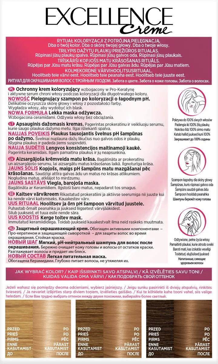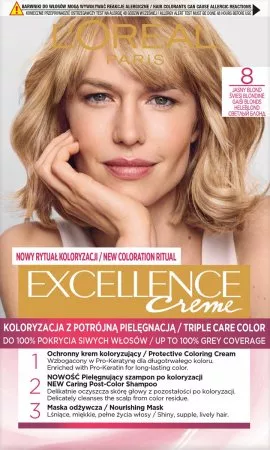 Farba do włosów L'Oreal Paris Excellence Creme 8 Jasny Blond to doskonały wybór dla osób poszukujących zaawansowanej ochrony włosów i koloru. Produkt ten został stworzony z myślą o potrójnej ochronie koloru, gwarantując piękne i zdrowe włosy.