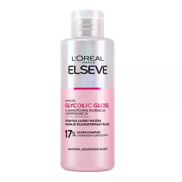 5-minutowa kuracja laminująca do spłukiwania L'Oreal Paris Glycolic Gloss to innowacyjne rozwiązanie dla Twoich włosów, które zamyka łuski włosa, nadając im długotrwały blask z efektem tafli. Dzięki formule wzbogaconej kwasem glikolowym oraz przełomowej technologii z 17% Gloss Complex, wzmacnia włókna włosa, poprawiając ich jakość. Rezultat to błyszczące włosy, które doskonale odbijają światło, a efekt metamorfozy włosów utrzymuje się do 10 myć.