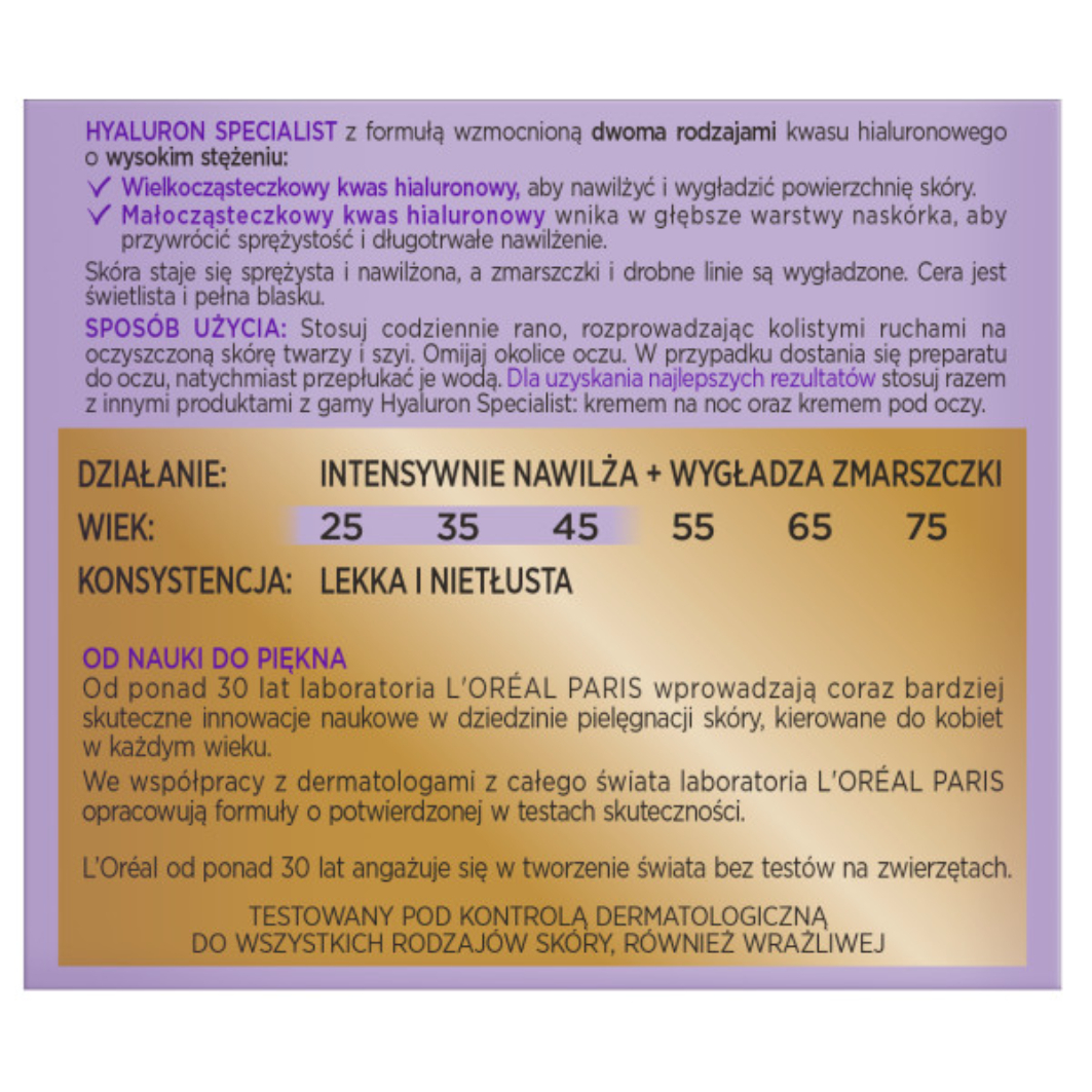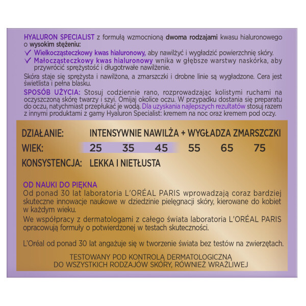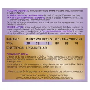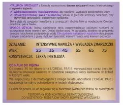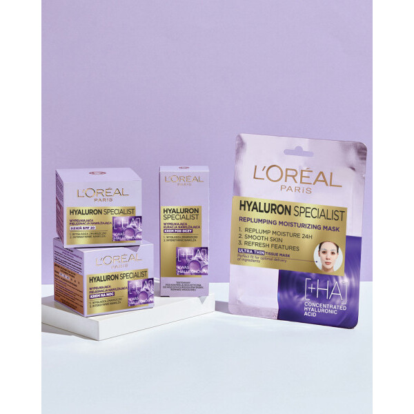 Laboratoria L’Oréal Paris prezentują L'Oreal Paris Hyaluron Specialist Krem nawilżający na dzień z SPF20, stworzony z myślą o kobietach pragnących zachować młodzieńczy i świeży wygląd skóry. Ten wyjątkowy krem, wzbogacony o dwa rodzaje kwasu hialuronowego, skutecznie nawilża oraz wygładza pierwsze oznaki starzenia.
