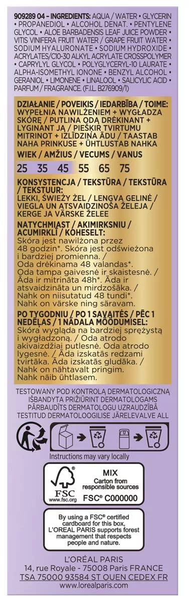 Kwas hialuronowy to kluczowy składnik aktywny, który naturalnie występuje w naszej skórze i wspomaga utrzymanie odpowiedniego poziomu nawilżenia. Po 25 roku życia jego poziom zaczyna spadać, dlatego warto sięgnąć po produkty zawierające ten cenny składnik. L'Oreal Paris Hyaluron Specialist Wypełniający Nawilżeniem Skoncentrowany Żel to rozwiązanie, które przywraca nawilżenie i wygładza zmarszczki, odpowiadając na potrzeby kobiet pragnących przedłużyć młody i świeży wygląd skóry.