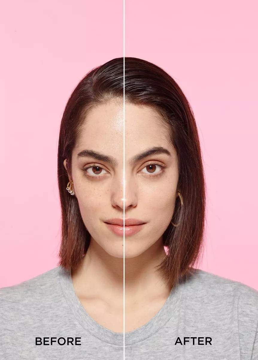Nałóż podkład na twarz i rozprowadź opuszkami palców, gąbeczką kosmetyczną lub pędzlem. Krycie możesz stopniować, od średniego do pełnego.