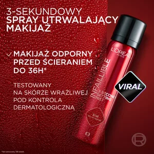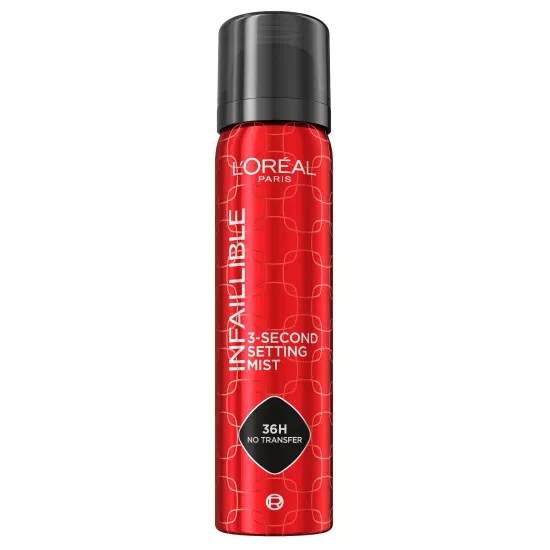 Odkryj L'Oreal Paris Infaillible 3-Second Setting Mist - rewolucyjny spray utrwalający makijaż, który w zaledwie 3 sekundy zapewnia trwałość aż do 36 godzin*. Dzięki innowacyjnej formule z trwałymi polimerami, chroni makijaż przed ścieraniem, działaniem wody, ciepła, potu i sebum, niezależnie od sytuacji.