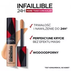 Odkryj L'Oreal Paris Infallible korektor Ivory, 11ml - multifunkcyjny korektor o pełnym kryciu, który zapewnia doskonałe pokrycie niedoskonałości i naturalny efekt. Dzięki elastycznej formule, korektor nie wysusza skóry, nie pozostawia smug i oferuje aż 24 godziny nawilżenia. Wyposażony w aplikator XXL, umożliwia precyzyjne pokrycie sińców pod oczami oraz innych niedoskonałości na całej twarzy. Wybierz spośród szerokiej gamy odcieni, które idealnie dopasowują się do Twojej cery. Wodoodporna formuła o wysokiej zawartości pigmentów zapewnia pełne krycie do 24 godzin, a dzięki mieszance olejków, konsystencja jest lekka i łatwa do rozprowadzania.