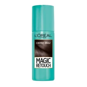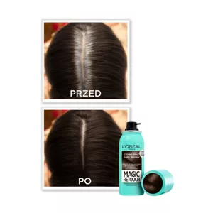 Spray do retuszu odrostów L'Oreal Paris Magic Retouch w odcieniu ciemny brąz to idealne rozwiązanie dla osób pragnących szybko i skutecznie ukryć odrosty. Produkt ten zapewnia natychmiastowy efekt retuszu włosów farbowanych, pozwalając na poprawę wyglądu w zaledwie kilka sekund. Jest łatwy w użyciu, a jego efekt utrzymuje się aż do kolejnego mycia, co czyni go doskonałym wyborem dla zapracowanych osób.