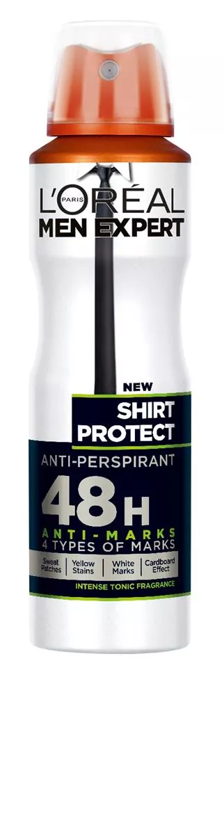 Męski antyperspirant w sprayu L'Oréal Paris Men Expert Shirt Protect to innowacyjne rozwiązanie dla każdego mężczyzny, który pragnie ochrony przed wilgocią, żółtymi plamami, białymi śladami oraz sztywnieniem materiału. Działa bez przerwy przez 48 godzin*, oferując pełny komfort i świeżość w każdej sytuacji. Dzięki zaawansowanej technologii i substancjom aktywnym, zapewnia wielofunkcyjną ochronę, która nie zawodzi w codziennych wyzwaniach.