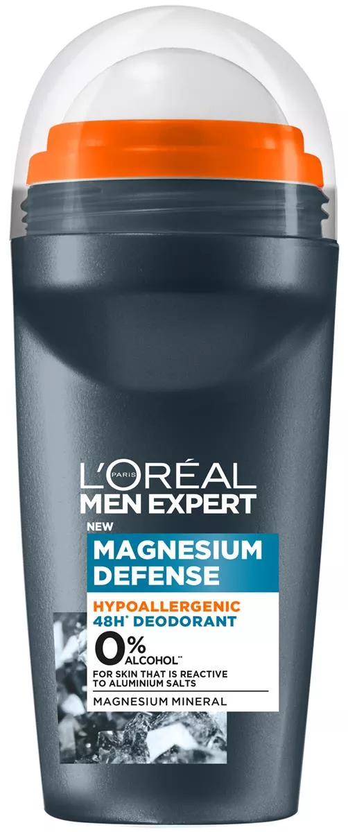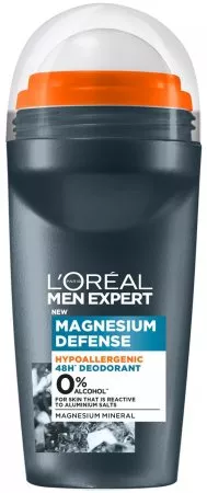 Odkryj L'Oreal Paris Men Expert Magnesium Defense Hipoalergiczny dezodorant Roll-On, 50ml - pierwszy dezodorant od L’Oréal Men Expert wzbogacony o tlenek magnezu, znany jako magnezja, ceniony za swoje ultra-absorbcyjne właściwości. Idealny dla mężczyzn o wrażliwej skórze, którzy poszukują delikatnych, a jednocześnie skutecznych rozwiązań. Formuła wolna od alkoholu etylowego i aluminium, hipoalergiczna i testowana na skórze wrażliwej, zapewnia długotrwałą ochronę i komfort.