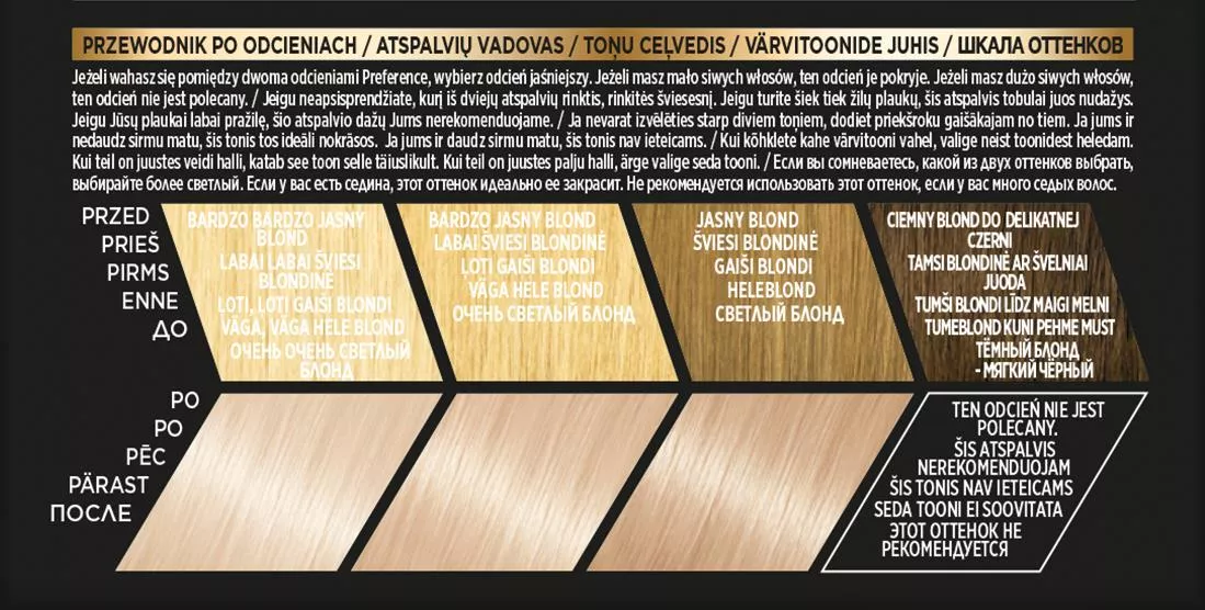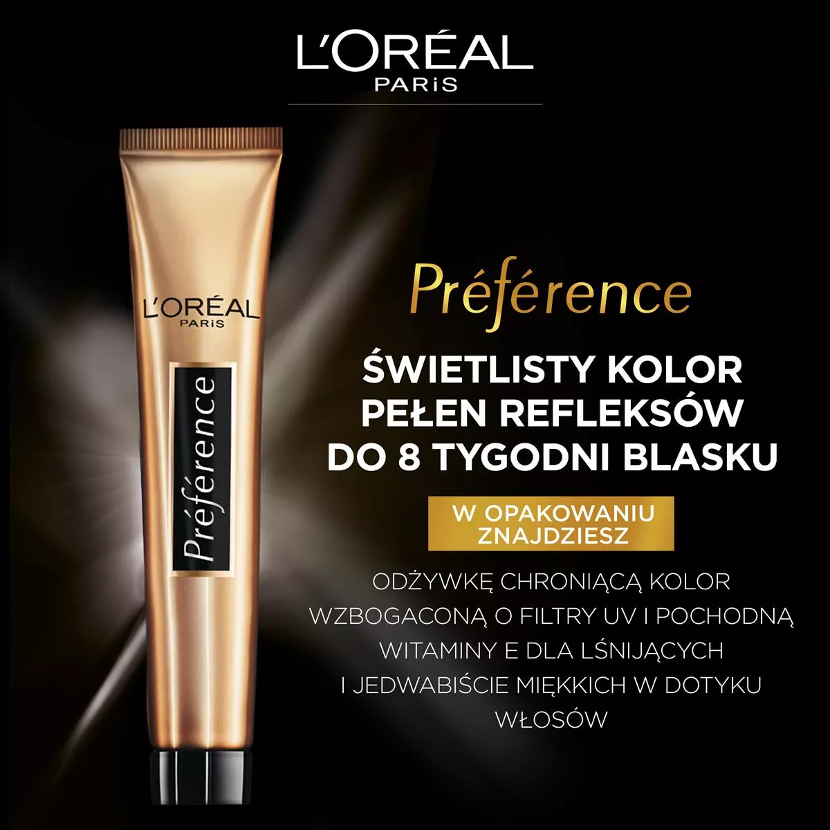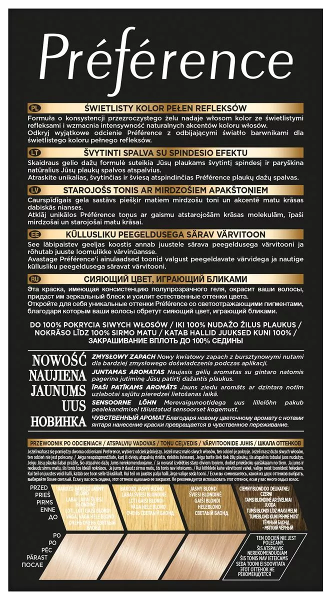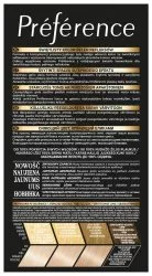 Sekret intensywnego połysku L'Oreal Paris Preference tkwi w zastosowaniu aktywatora połysku z opatentowanymi barwnikami o wysokiej odporności. Te barwniki mają większą objętość w porównaniu z tradycyjnymi barwnikami koloryzującymi, co pozwala im dłużej pozostawać we wnętrzu włosa. Dzięki temu zapewniają długotrwały, intensywny kolor oraz doskonałe pokrycie siwych włosów. Rezultat: kolor jest szlachetny i pełen życia, zachowując połysk przez wiele tygodni.