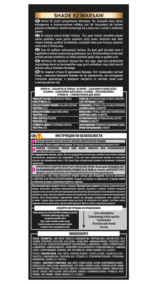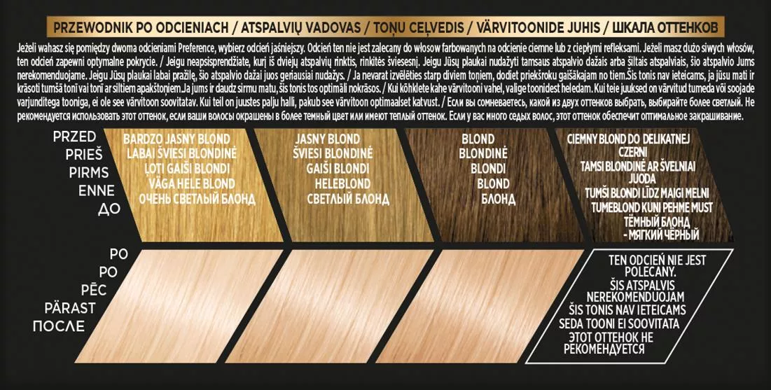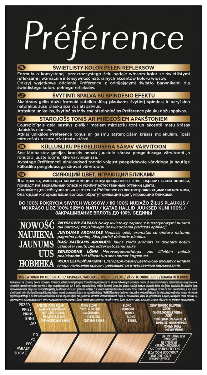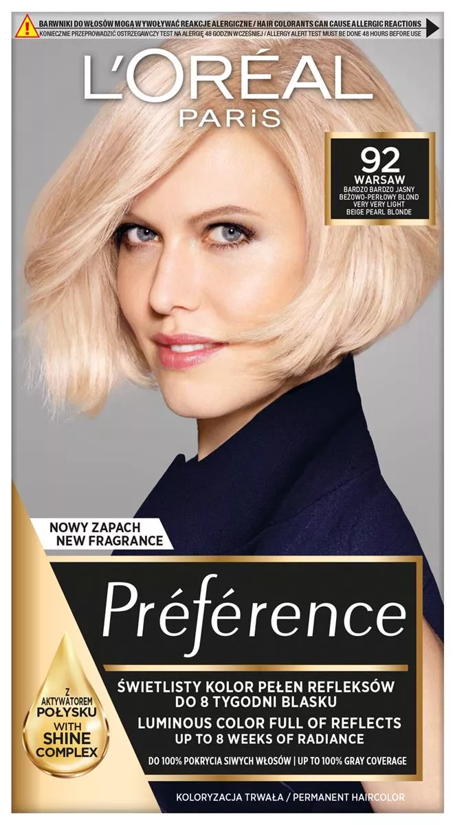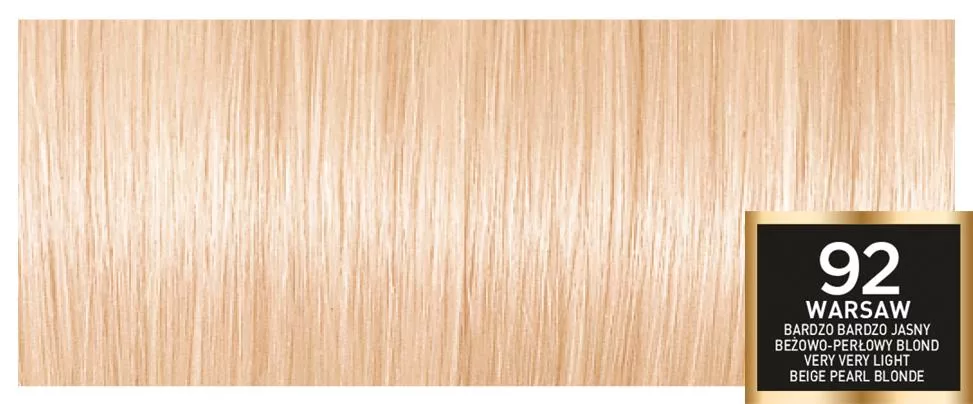 Sekret intensywnego połysku L'Oreal Paris Preference 92 Iridescent Blonde tkwi w unikalnym aktywatorze połysku, który zawiera opatentowane barwniki wysokiej odporności. Te barwniki mają większą objętość w porównaniu z tradycyjnymi barwnikami koloryzującymi, co pozwala im dłużej pozostawać we wnętrzu włosa. Dzięki temu zapewniają długotrwały, intensywny kolor i doskonałe pokrycie siwych włosów. Rezultat to szlachetny kolor pełen życia, który zachowuje swój połysk przez wiele tygodni.