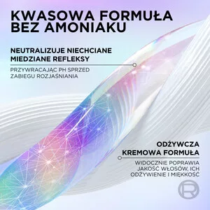 - Przywraca naturalne pH włosów po zabiegu rozjaśniania