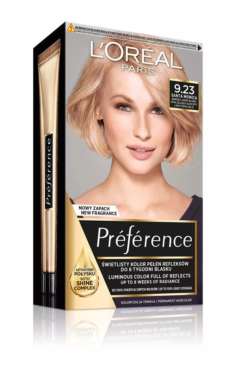 L'Oreal Paris Préférence Trwała Farba do włosów 9.23 Santa Monica, Bardzo Jasny Blond Opalizująco - Złocisty