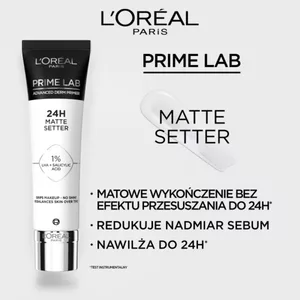 Odkryj L'Oreal Paris Prime Lab 24h Matte Setter Primer – matującą bazę pod makijaż, która zapewni Twojej skórze doskonałe przygotowanie do aplikacji podkładu. Dzięki rekomendacji dermatologów L'Oréal Paris, Prime Lab gwarantuje utrzymanie nieskazitelnego makijażu do 24 godzin*, jednocześnie dbając o odpowiednie nawilżenie Twojej skóry.