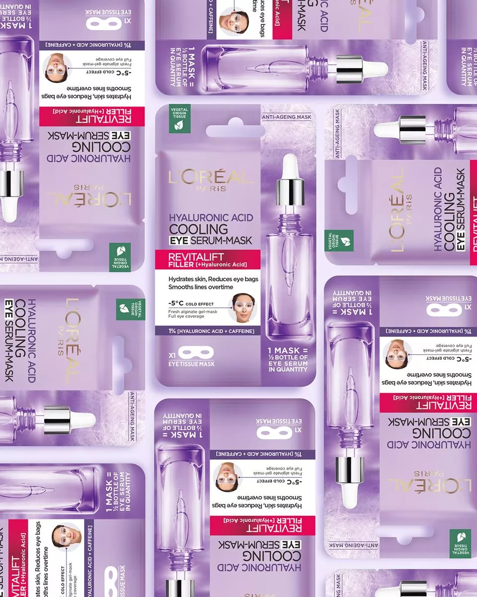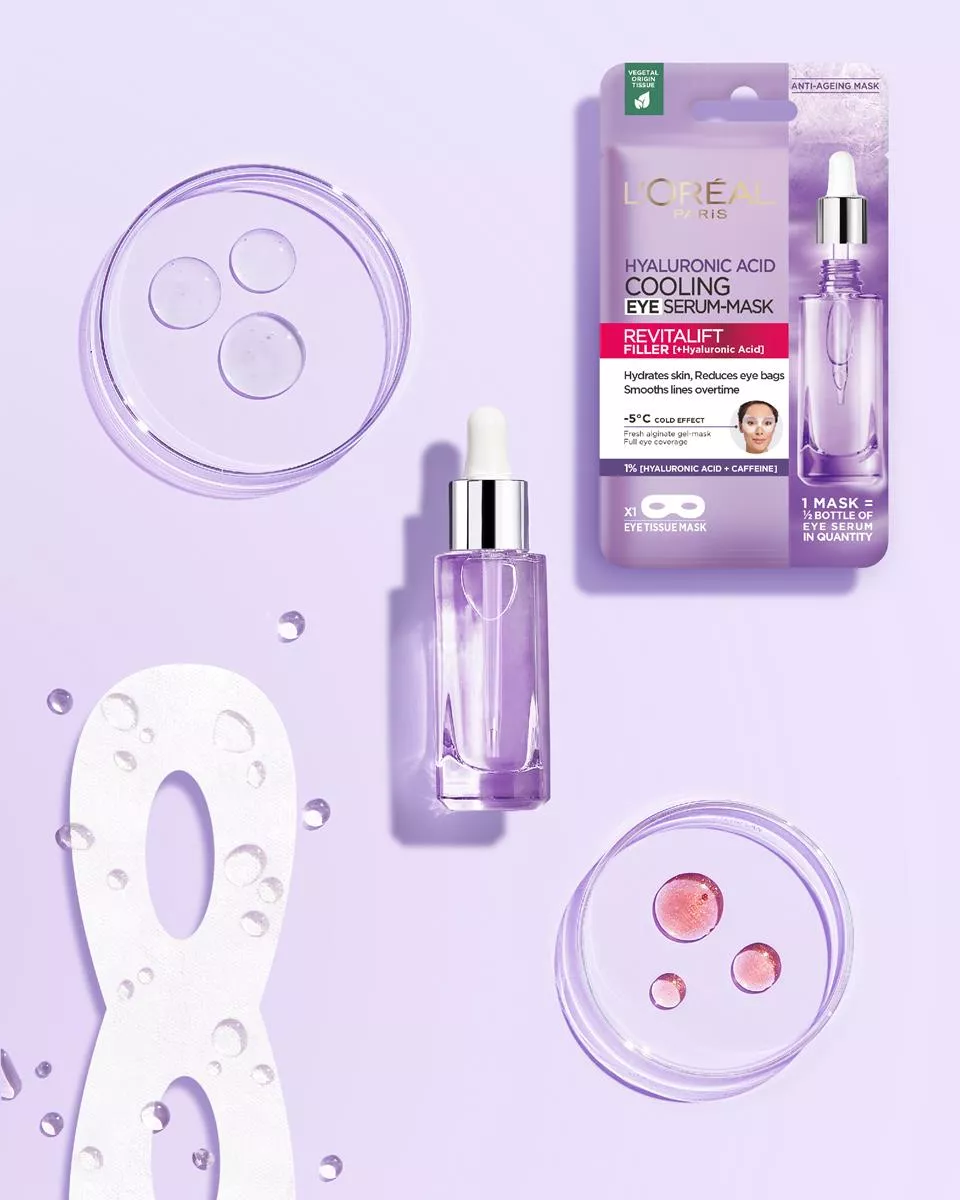 Laboratoria L'Oréal Paris przedstawiają chłodzącą maskę z serum pod oczy Revitalift Filler, która oferuje zaawansowaną pielęgnację przeciwzmarszczkową. Produkt ten zawiera pół butelki serum pod oczy i jest wzbogacony o kwas hialuronowy oraz kofeinę, co pozwala skutecznie redukować opuchnięcia i wygładzać drobne zmarszczki. Dzięki czystemu kwasowi hialuronowemu, maska wspomaga intensywne nawilżenie skóry, jednocześnie redukując zmarszczki wokół oczu. Kofeina dodatkowo pomaga zmniejszać cienie pod oczami. Maska wykonana z włókien alg ma świeżą, galaretkowatą konsystencję, która zapewnia natychmiastowy efekt chłodzenia o -5°C.