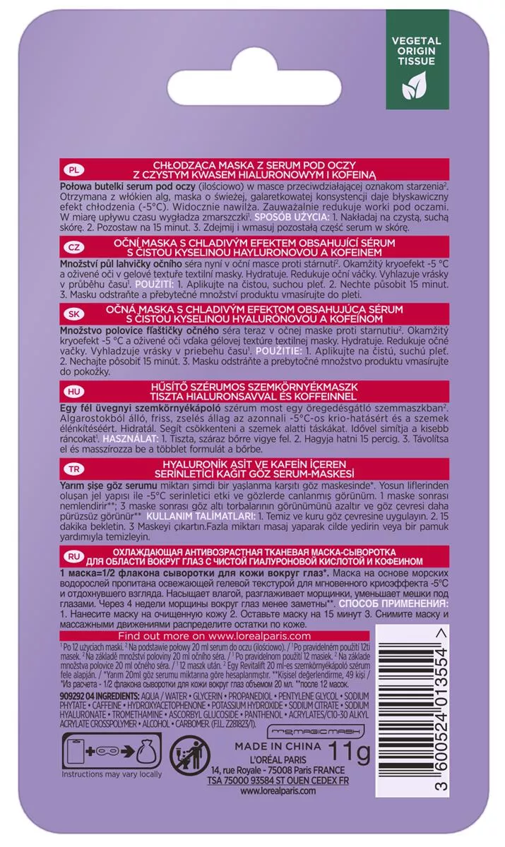 L'Oreal Paris Revitalift Filler Chłodząca maska z serum pod oczy 11g