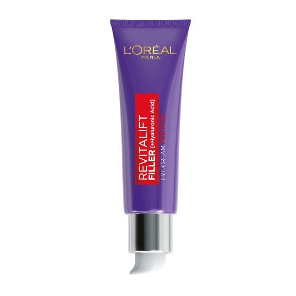 Skóra wokół oczu jest znacznie cieńsza i bardziej delikatna niż ta na pozostałej części twarzy. Z tego powodu wykazuje tendencję do przesuszania i właśnie tutaj pojawiają się pierwsze drobne linie i zmarszczki. L'Oreal Paris Revitalift Filler Krem pod oczy dla całej twarzy oferuje bogatą formułę, która zapewnia wysoką efektywność działania. Dzięki niemu pozytywne rezultaty widoczne na skórze wokół oczu można zauważyć na całej twarzy.