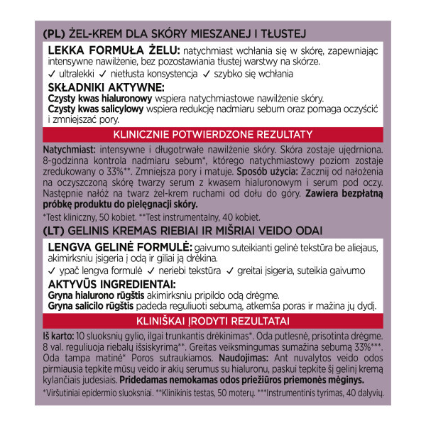 Odkryj L'Oreal Paris Revitalift Filler, nawilżający żel-krem regulujący nadmiar sebum, idealny do codziennej pielęgnacji skóry mieszanej i tłustej. Jego lekka formuła szybko wchłania się w skórę, zapewniając intensywne nawilżenie bez pozostawiania tłustej warstwy. Wzbogacony o czysty kwas hialuronowy i salicylowy, wspiera nawilżenie, redukcję nadmiaru sebum oraz zmniejsza widoczność porów, oferując kompleksową pielęgnację.