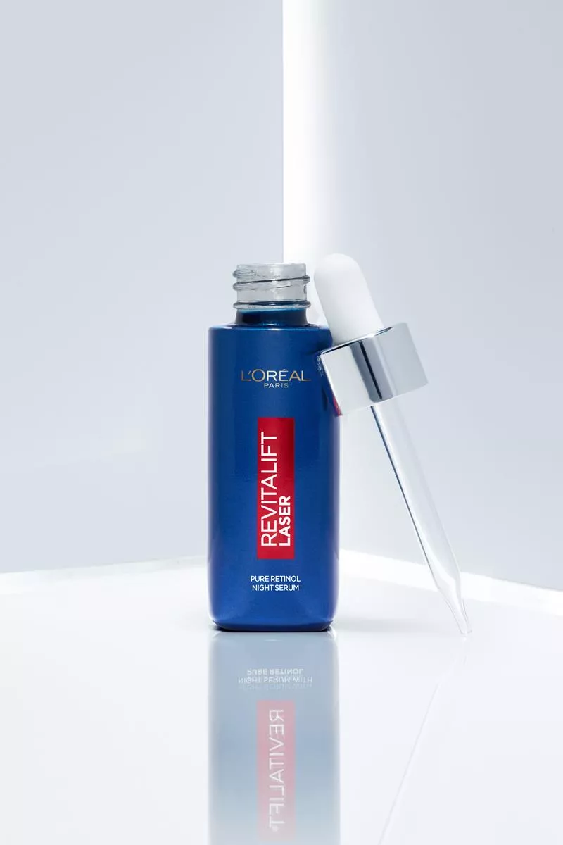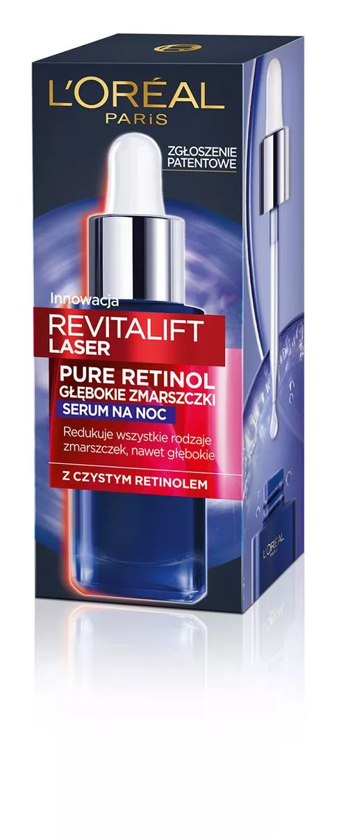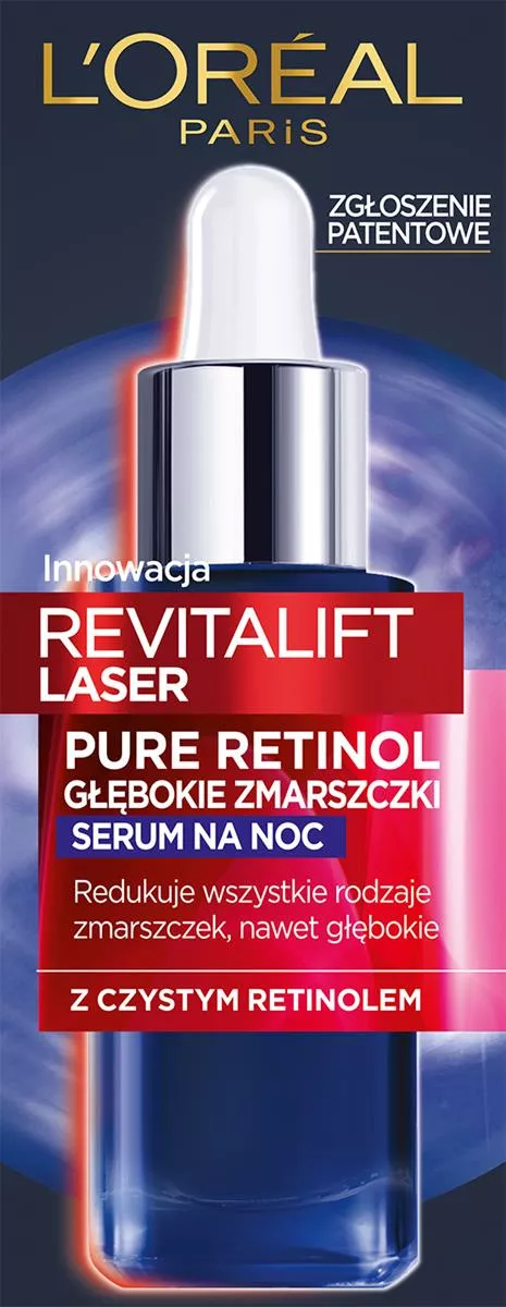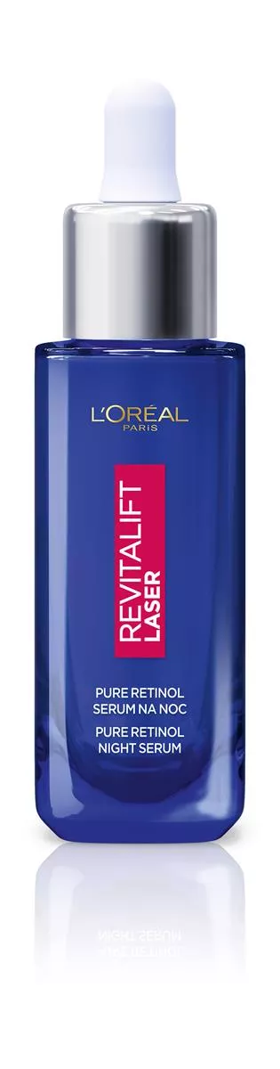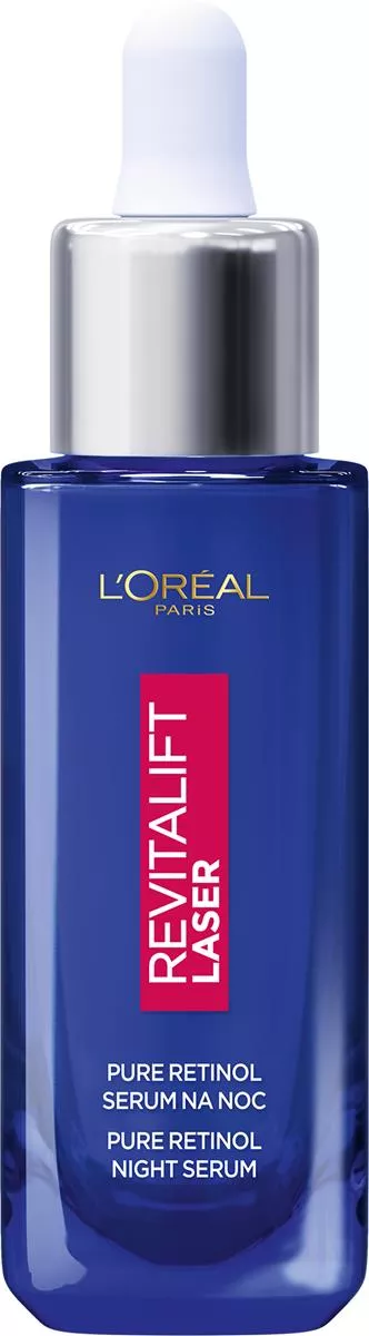 Serum na noc L'Oreal Paris Revitalift Laser Pure Retinol to zaawansowana formuła stworzona z myślą o walce z głębokimi zmarszczkami i poprawie struktury skóry. W składzie znajduje się czysty retinol, który jest wysoce rekomendowany przez dermatologów ze względu na swoje właściwości przeciwstarzeniowe. Dzięki swojej aktywności biologicznej, retinol przyspiesza regenerację komórek w głębokich warstwach naskórka, co sprawia, że skóra staje się bardziej zagęszczona i wygładzona. Serum zawiera także kwas hialuronowy i naturalne olejki, które zapewniają odpowiednie nawilżenie i komfort podczas aplikacji. Już po miesiącu stosowania skóra wygląda młodziej i jest bardziej promienna, a po czterech miesiącach zmarszczki ulegają redukcji o 36%.