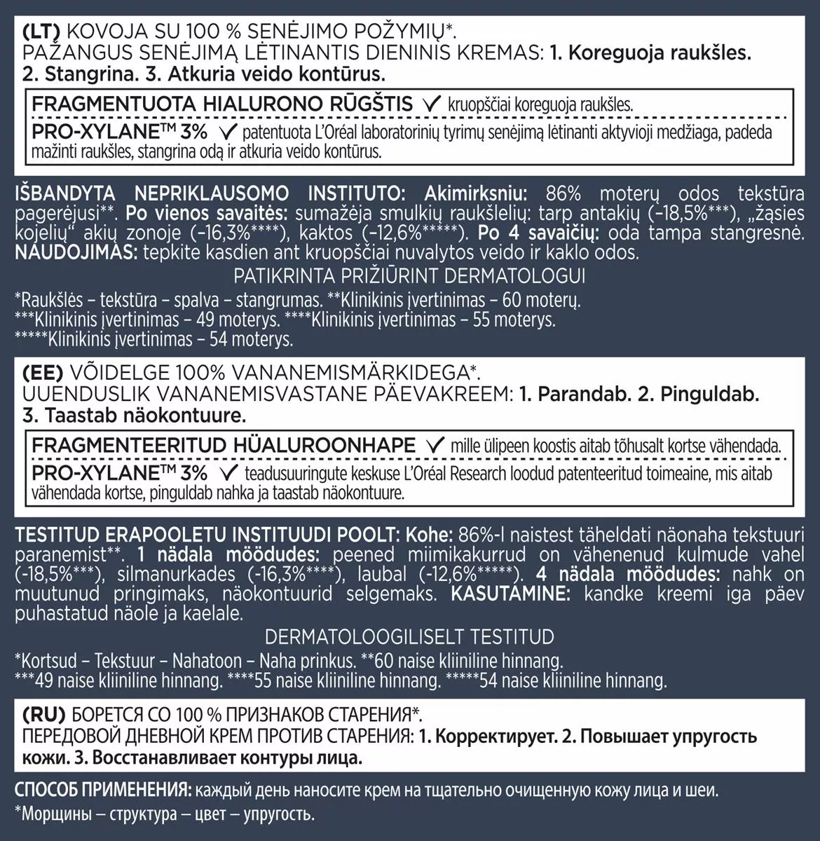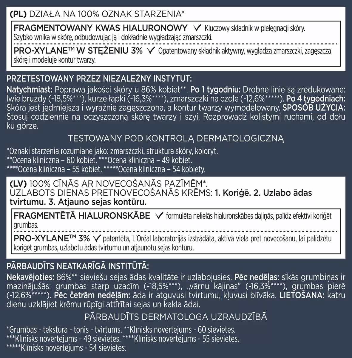 - Regularne stosowanie przez 6 miesięcy redukuje widoczność zmarszczek o 7 lat.