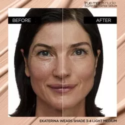 Odkryj nowość L'Oreal Paris True Match Nude, skoncentrowane serum w podkładzie Light Medium, które wyrównuje koloryt skóry i nadaje jej sprężystość dzięki zawartości 1% kwasu hialuronowego. To idealne połączenie pielęgnacji i makijażu, które łączy zalety serum z blaskiem i kryciem podkładu. Serum, wzbogacone o świetliste pigmenty, zapewnia promienne i nieskazitelne krycie, jednocześnie pielęgnując skórę, co jest widoczne natychmiast. Formuła dopasowuje się do skóry, pozostawiając ją naturalnie świetlistą dla efektu no makeup.