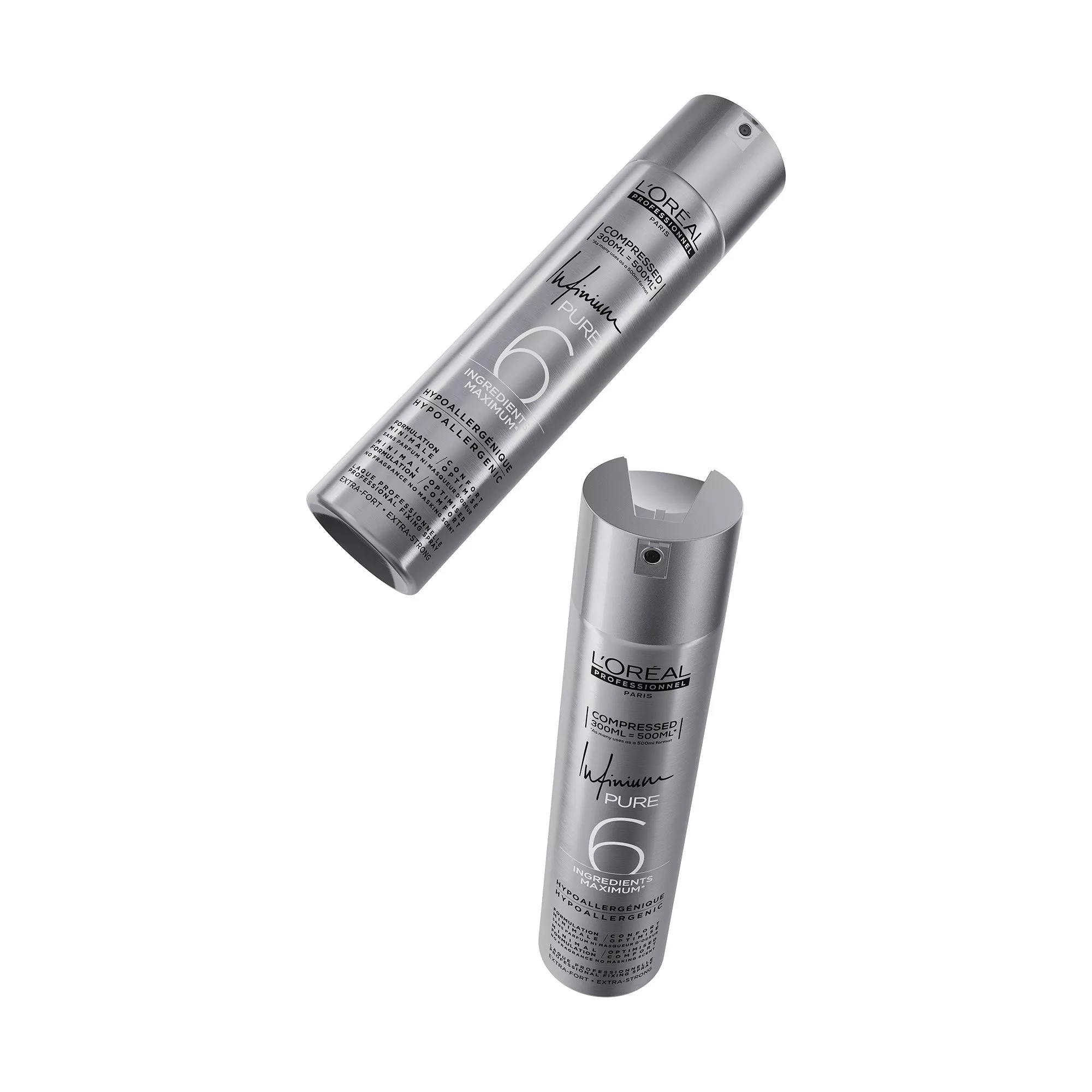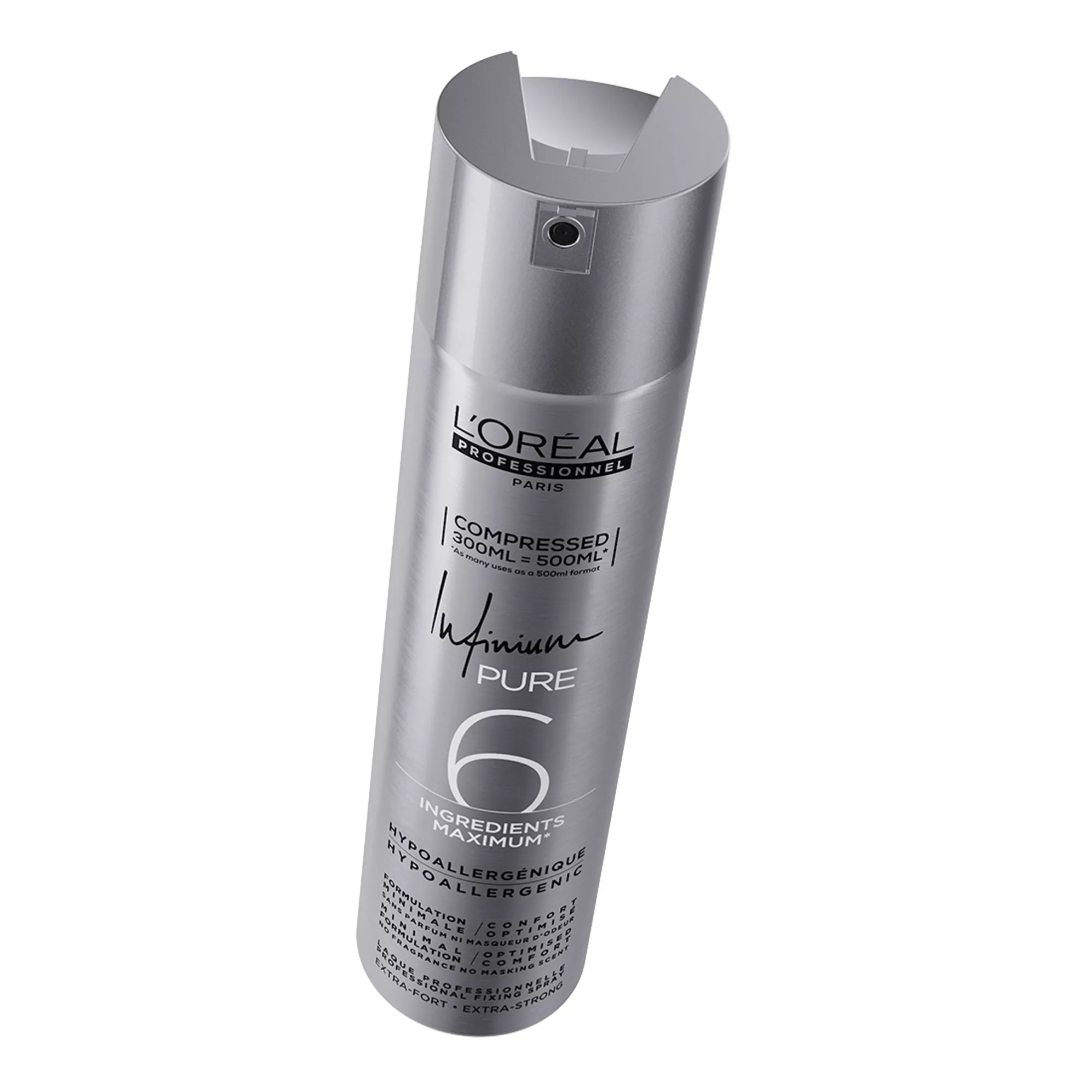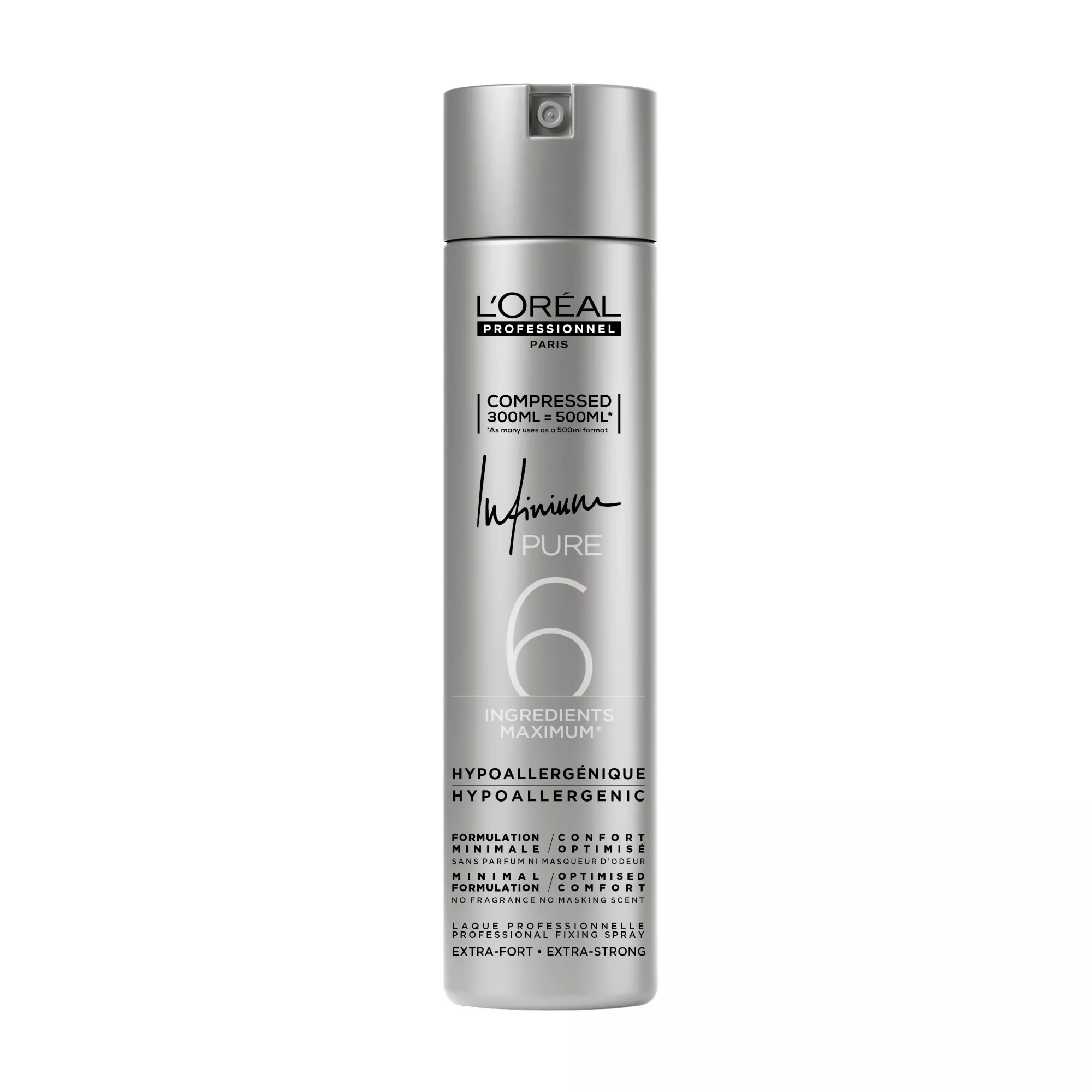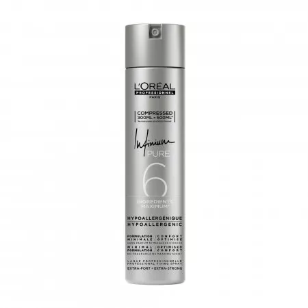 Loreal Professionnel Infinium Pure to profesjonalny lakier do włosów, który zdobył uznanie konsumentek, fryzjerów i stylistów fryzur na pokazach mody. Jego formuła jest idealna dla wszystkich rodzajów stylizacji, w tym tapirowania, gniecenia, nadawania objętości i wykończenia fryzury. Lakier zapewnia natychmiastowe utrwalenie na wiele godzin, niezależnie od warunków atmosferycznych, bez efektu sztywności i sztuczności. Jest suchy, nie pozostawia osadu na włosach i zapewnia super połysk.