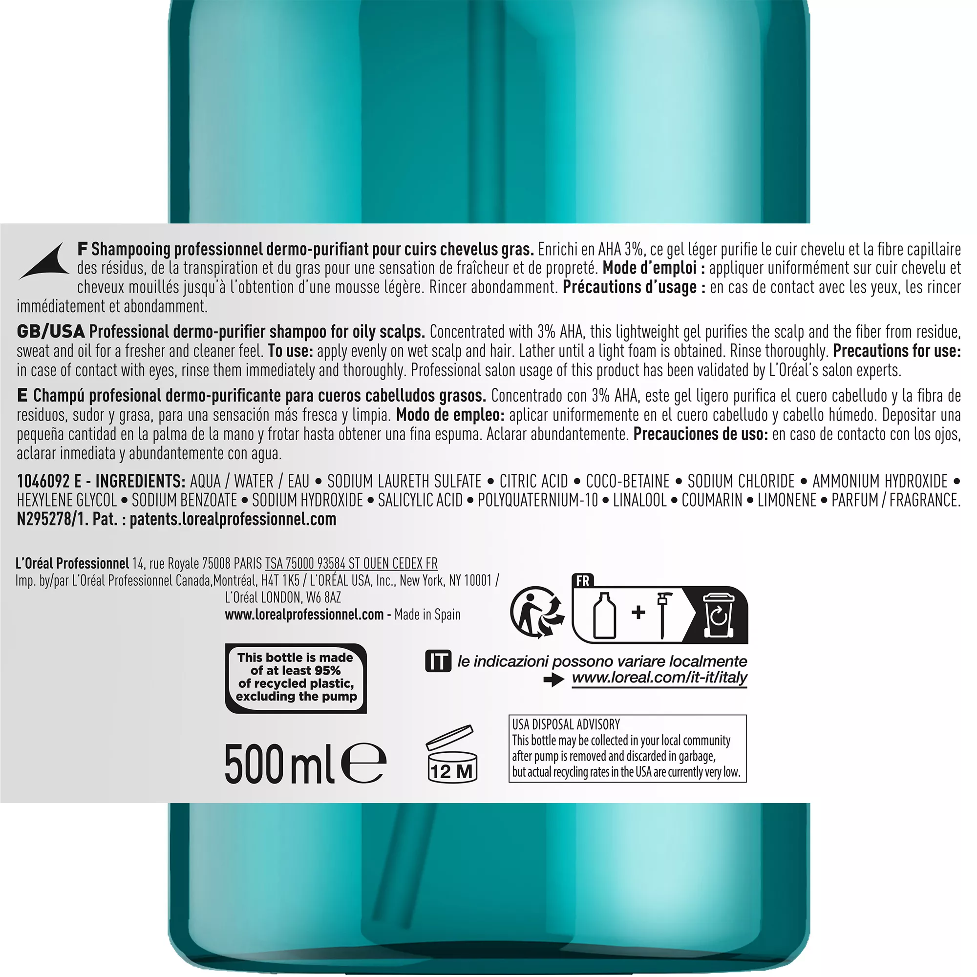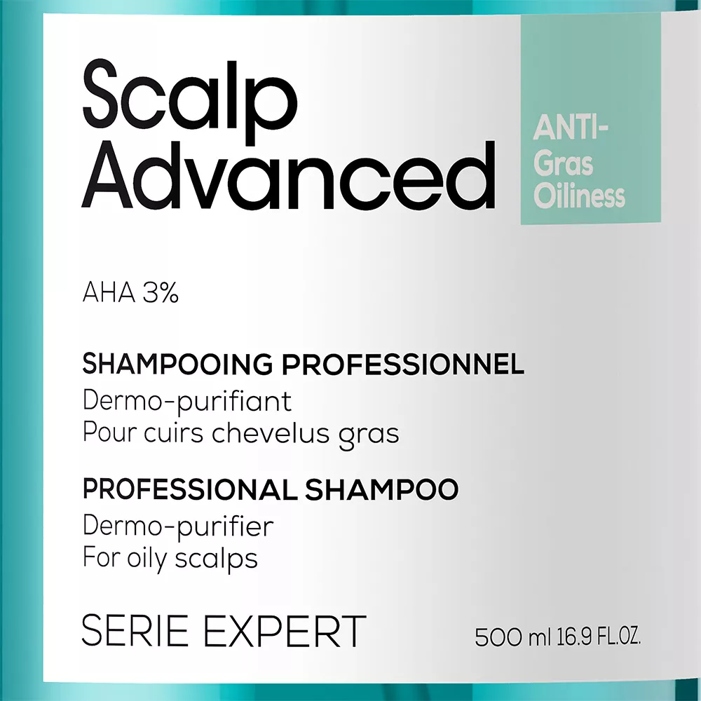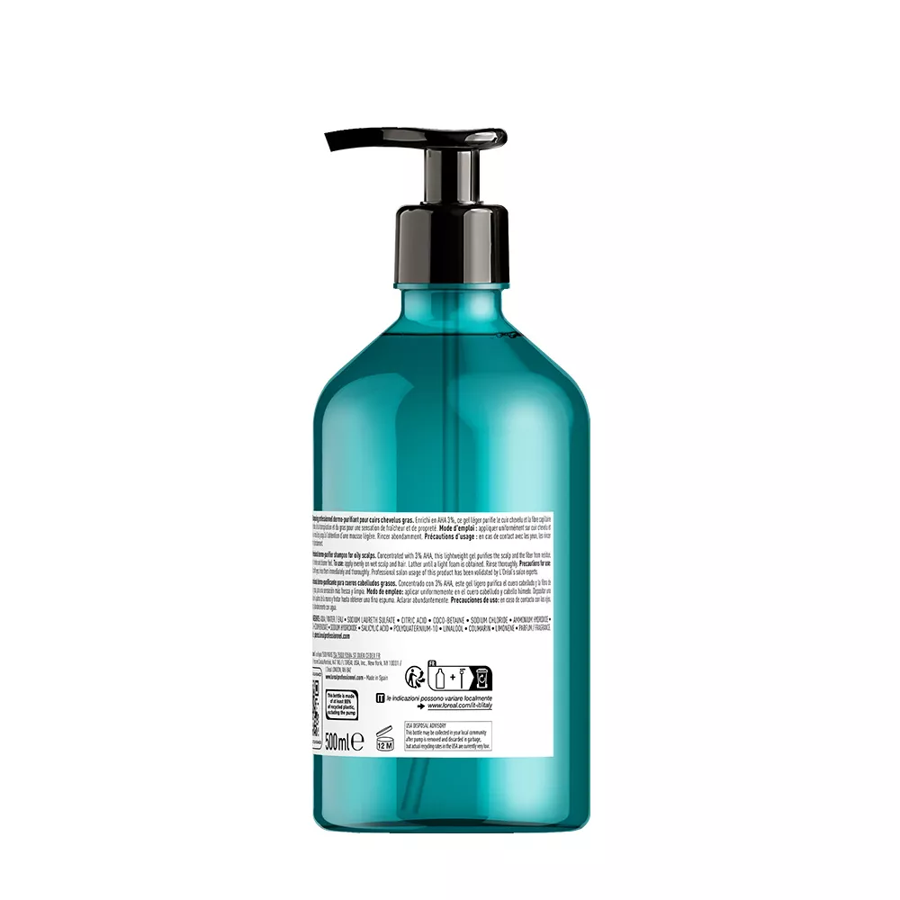 Szampon oczyszczający Loreal Scalp Advanced został opracowany z myślą o przetłuszczającej się skórze głowy. Jego lekka, żelowa formuła skutecznie usuwa zanieczyszczenia, pozostałości po kosmetykach do stylizacji, pot i sebum. Dzięki temu szybko odzyskasz uczucie świeżości i czystości, a Twoje włosy będą dłużej wyglądały świeżo. W składzie znajduje się 3% AHA, składnik, który stymuluje wzrost nowych komórek i pomaga w neutralnym oczyszczaniu i odświeżeniu skóry głowy.
