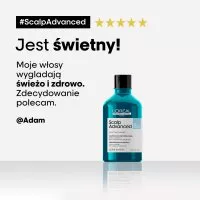 Masz problematyczne włosy i skórę głowy? Sięgnij po szampon przeciwłupieżowy L'Oreal Scalp Advanced. Ten kosmetyk skutecznie oczyszcza włosy i doskonale sprawdza się w przypadku włosów ze skłonnością do przetłuszczania się. Dzięki obecności składników przeciwutleniających i zmiękczających wodę, włosy wyglądają zdrowo i promienieją blaskiem. Idealny do codziennego użytku, zawiera pirokton olaminy, który delikatnie oczyszcza, usuwa widoczny łupież suchy i tłusty oraz łagodzi podrażnienia skóry głowy.