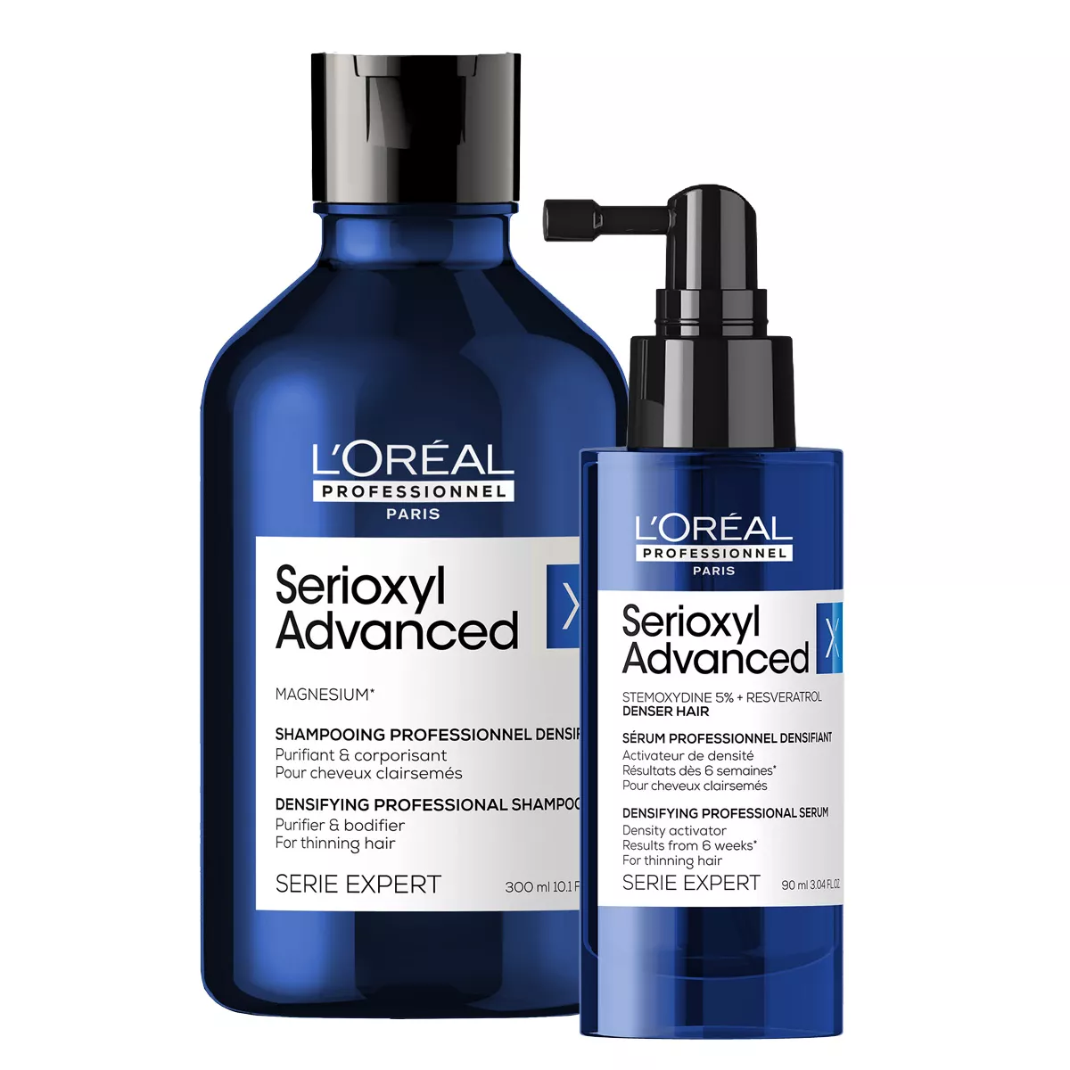 Zestaw kosmetyków na porost włosów Loreal Serioxyl Advanced to profesjonalne rozwiązanie dla skóry głowy, która utraciła równowagę. Zatwierdzony przez dermatologów, ten zestaw jest idealny dla osób z przerzedzającymi się włosami. Łagodnie oczyszcza włosy, przywracając im zdrowy wygląd oraz piękną objętość, co skutkuje lśniącymi i pięknymi włosami. Specjalistyczne serum zagęszczające włosy, opracowane z myślą o włosach przerzedzonych, zawiera unikalną formułę z 5% Stemoxydina i Resweratrolu, wzbogaconą o właściwości pielęgnujące.